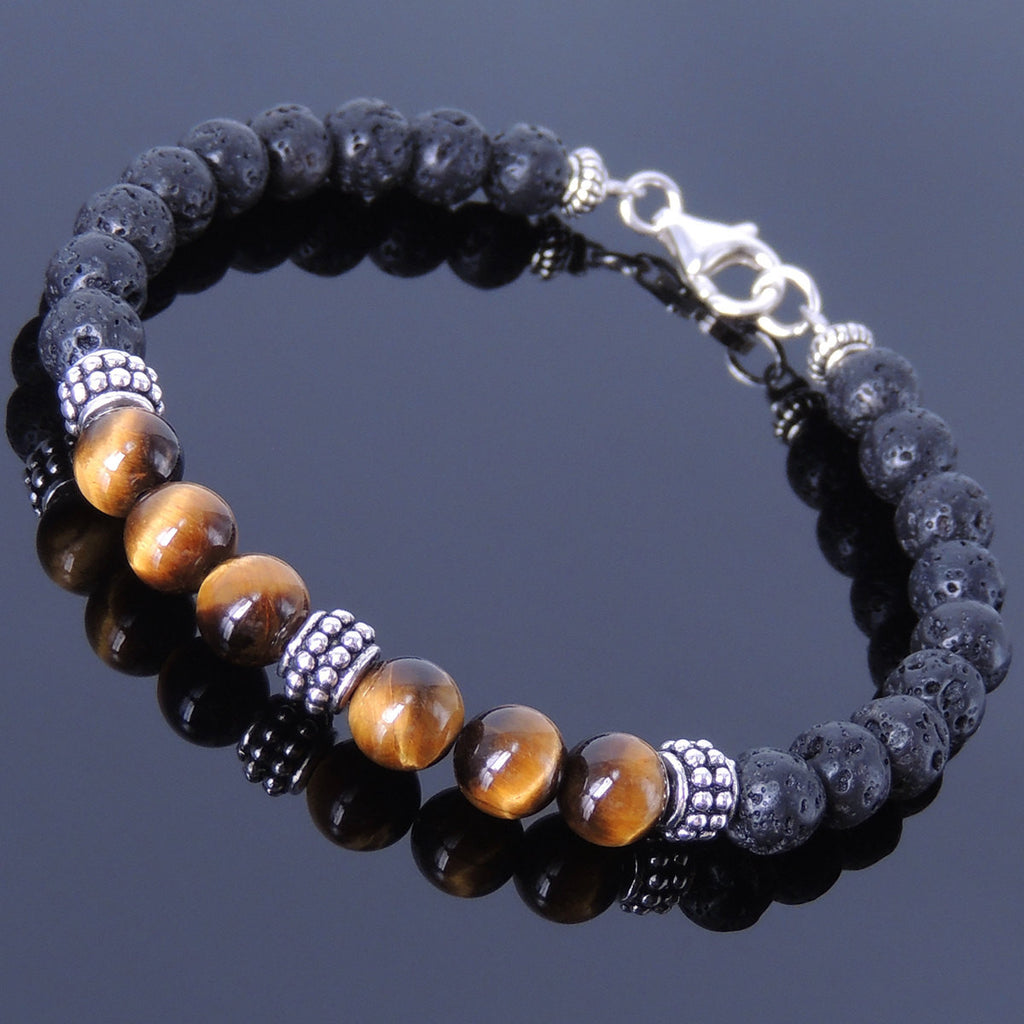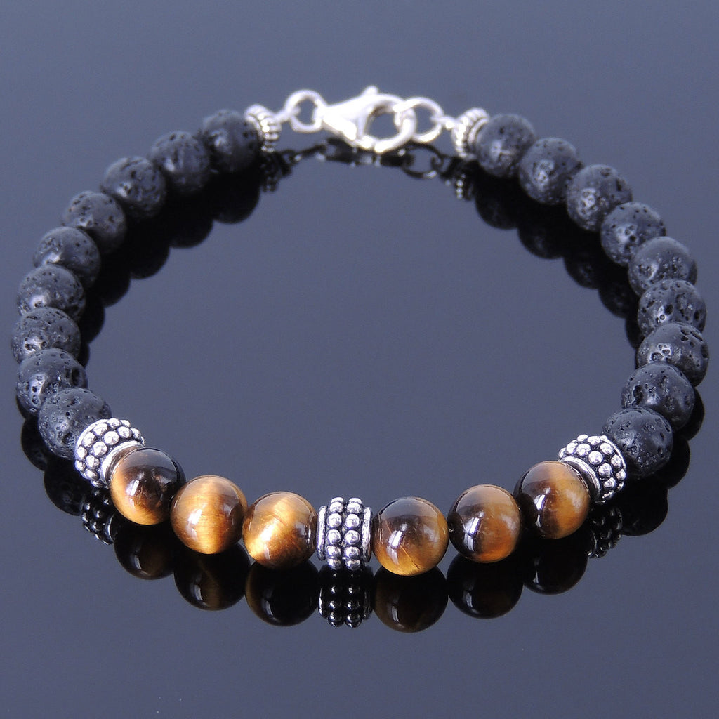 Materials: Tiger Eye,Gemstone,S925 Sterling Silver,Silver Spacer,Brown Tiger Eye,Silver Clasp,Lava Rock