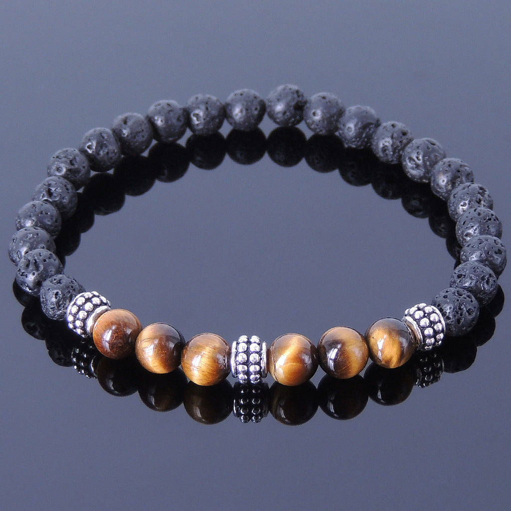 Materials: Tiger Eye,Gemstone,S925 Sterling Silver,Silver Spacer,Brown Tiger Eye,Lava Rock,Elastic