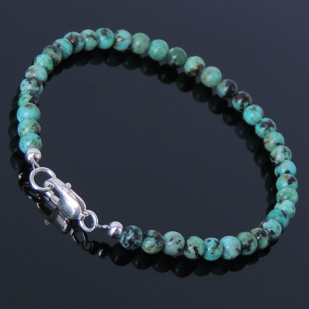 Materials: Gemstone,4mm African Green Turquoise,Natural Turquoise,925 Sterling Silver,Silver Clasp