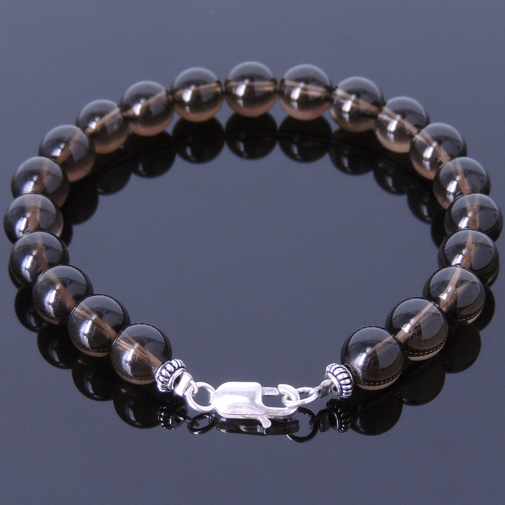 Men Women Gemstone Bracelet Smoky Quartz 925 Sterling Silver Clasp DiyNotion BR380