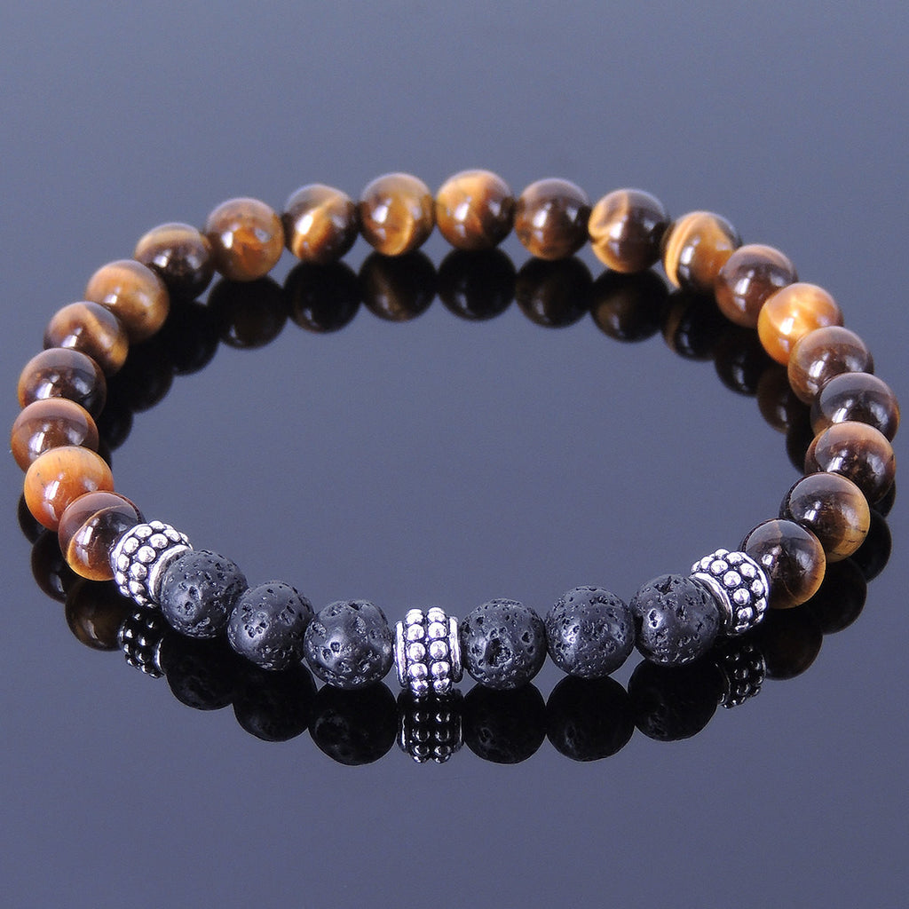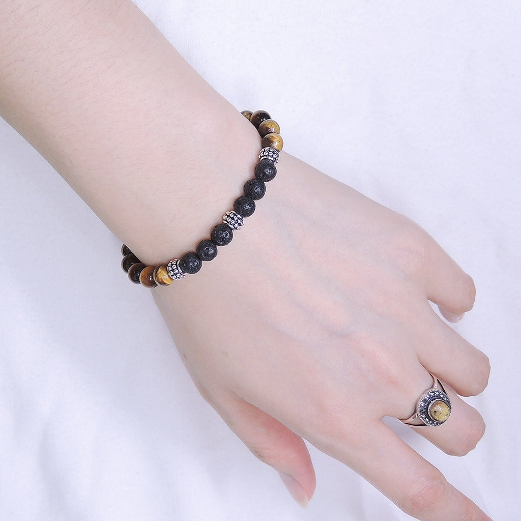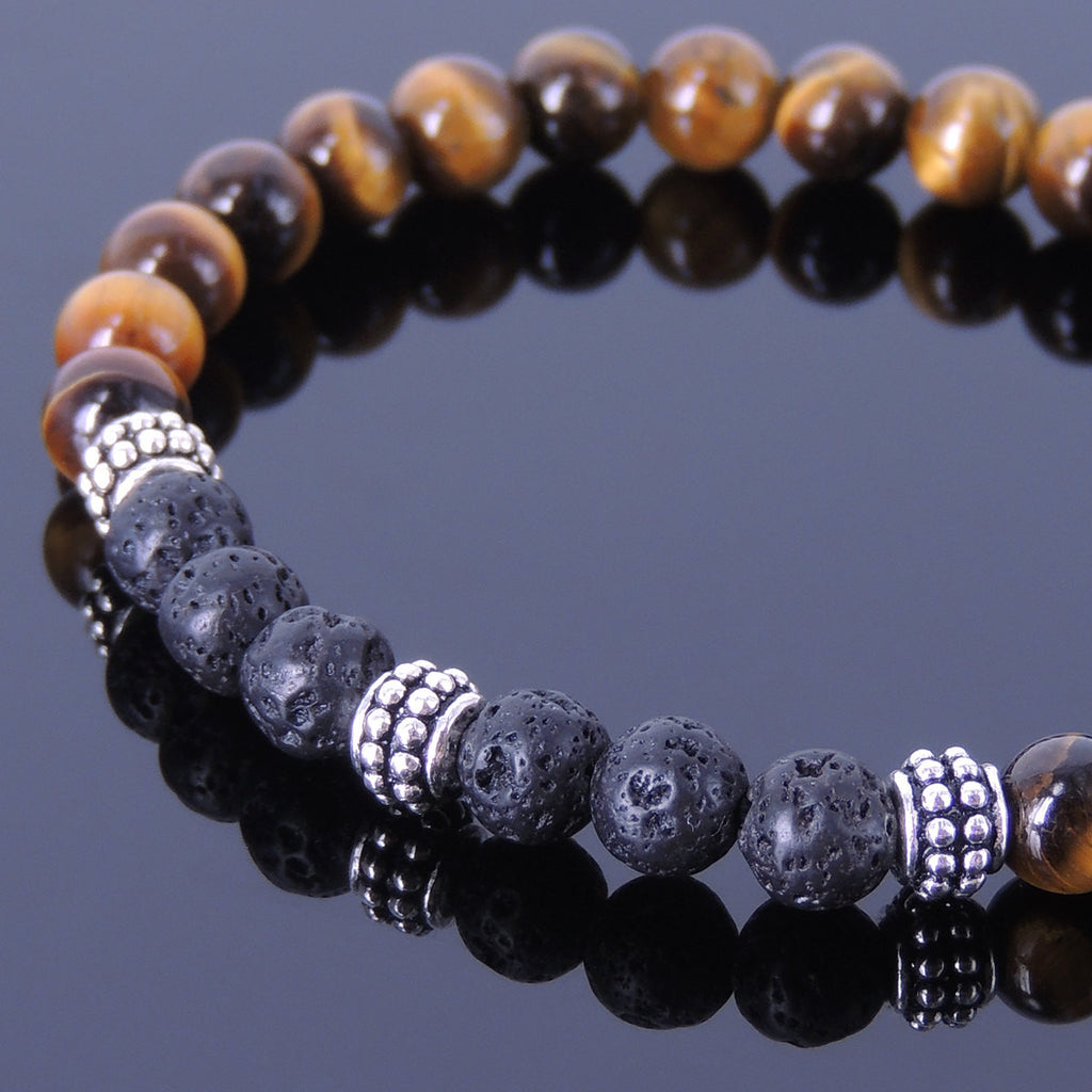 Men/Women Gemstone Bracelet Tiger Eye Lava Rock 925 Sterling Silver Spacers DiyNotion BR370