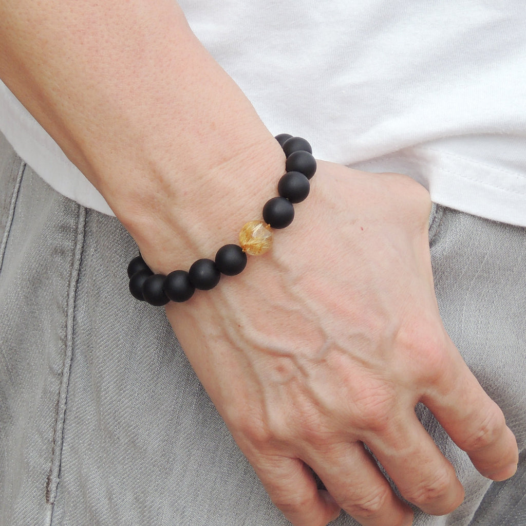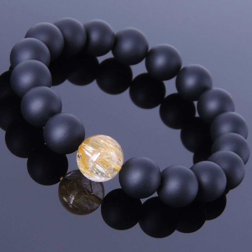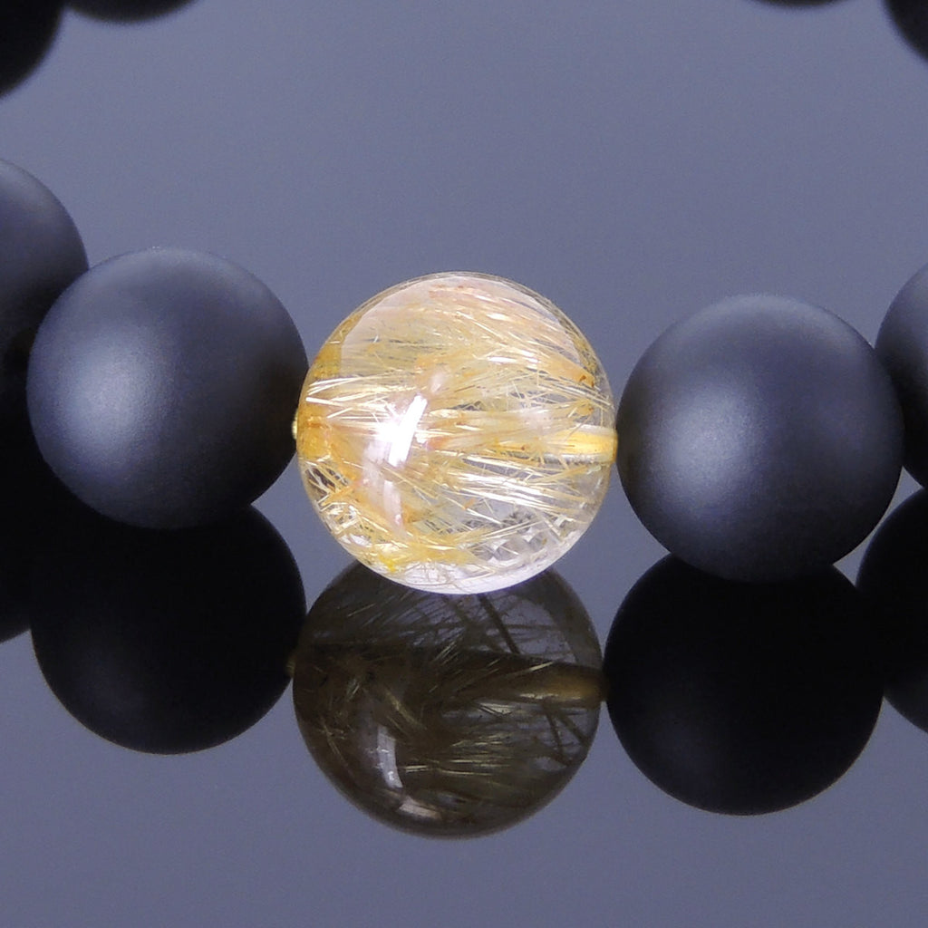 Materials: Gemstone,Matte Black Onyx,Golden Rutilated Quartz,Elastic Cords