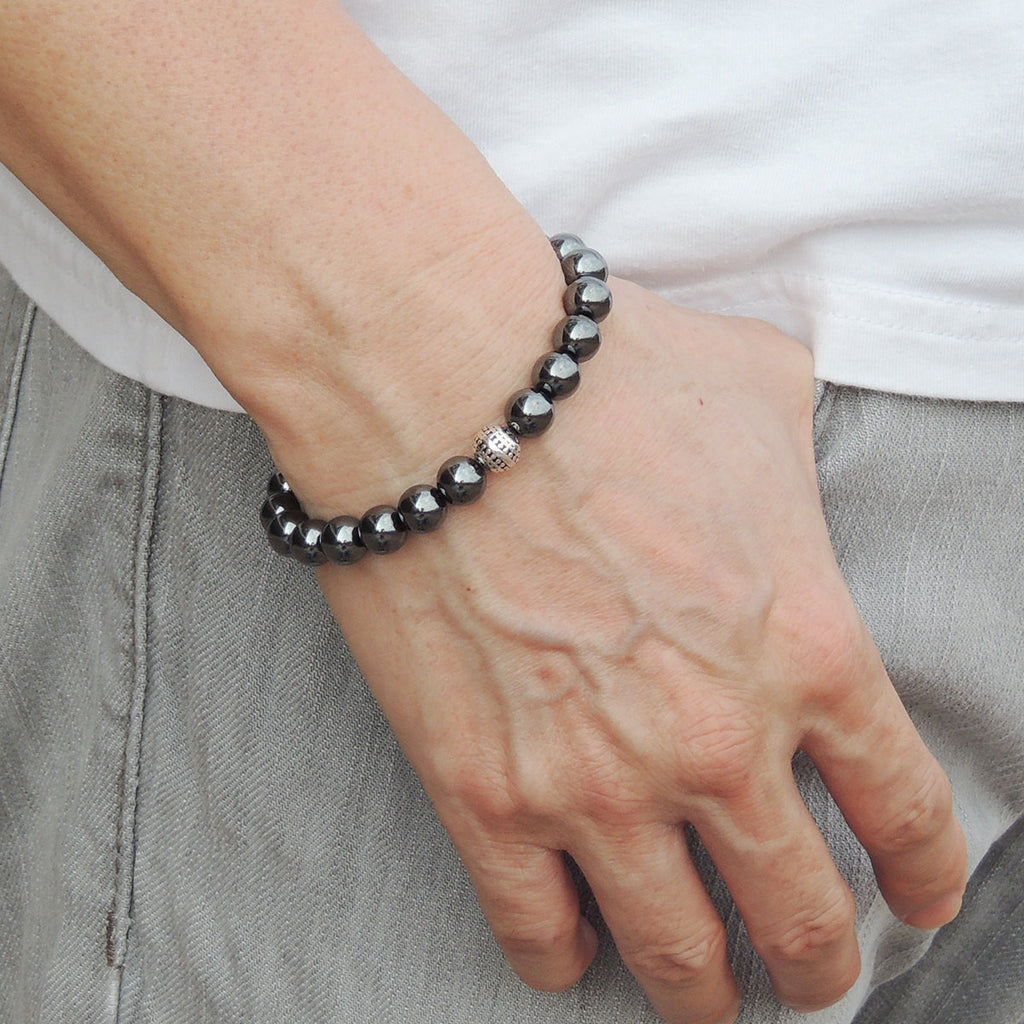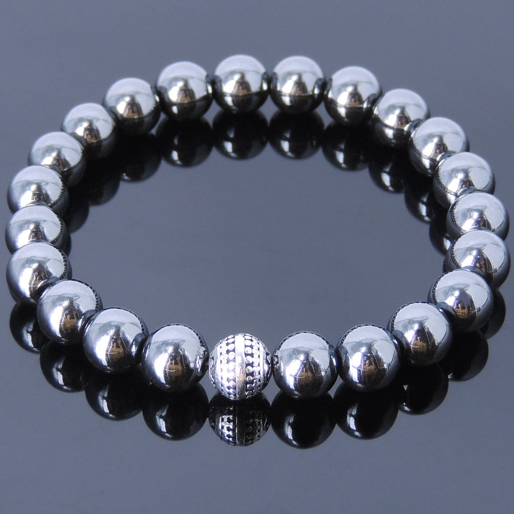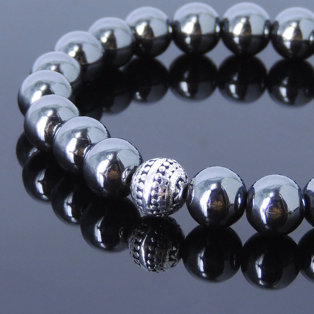Men Women Hematite Bracelet Gemstone 925 Sterling Silver Round Bead DiyNotion BR457