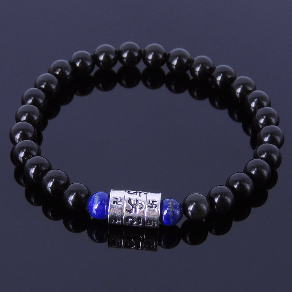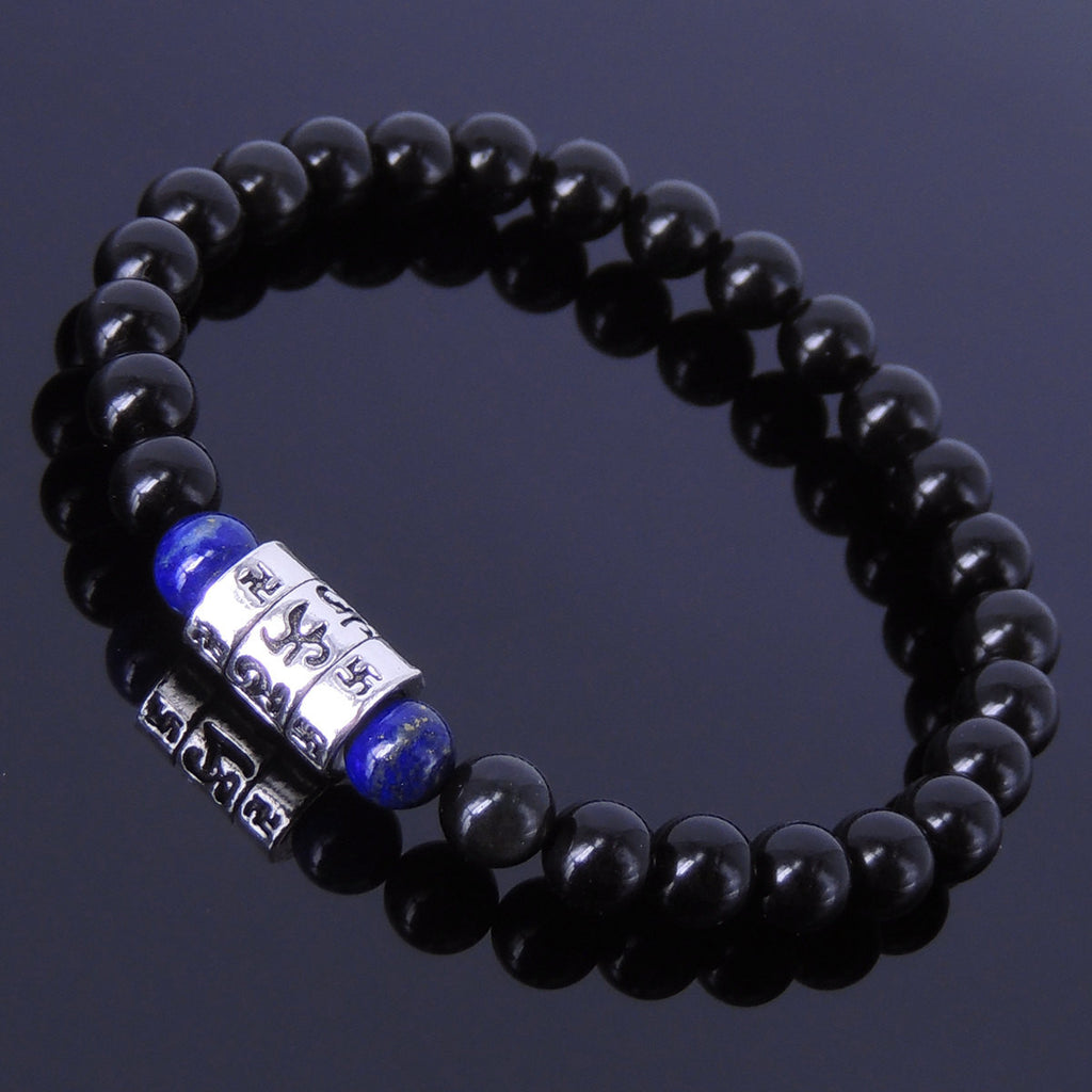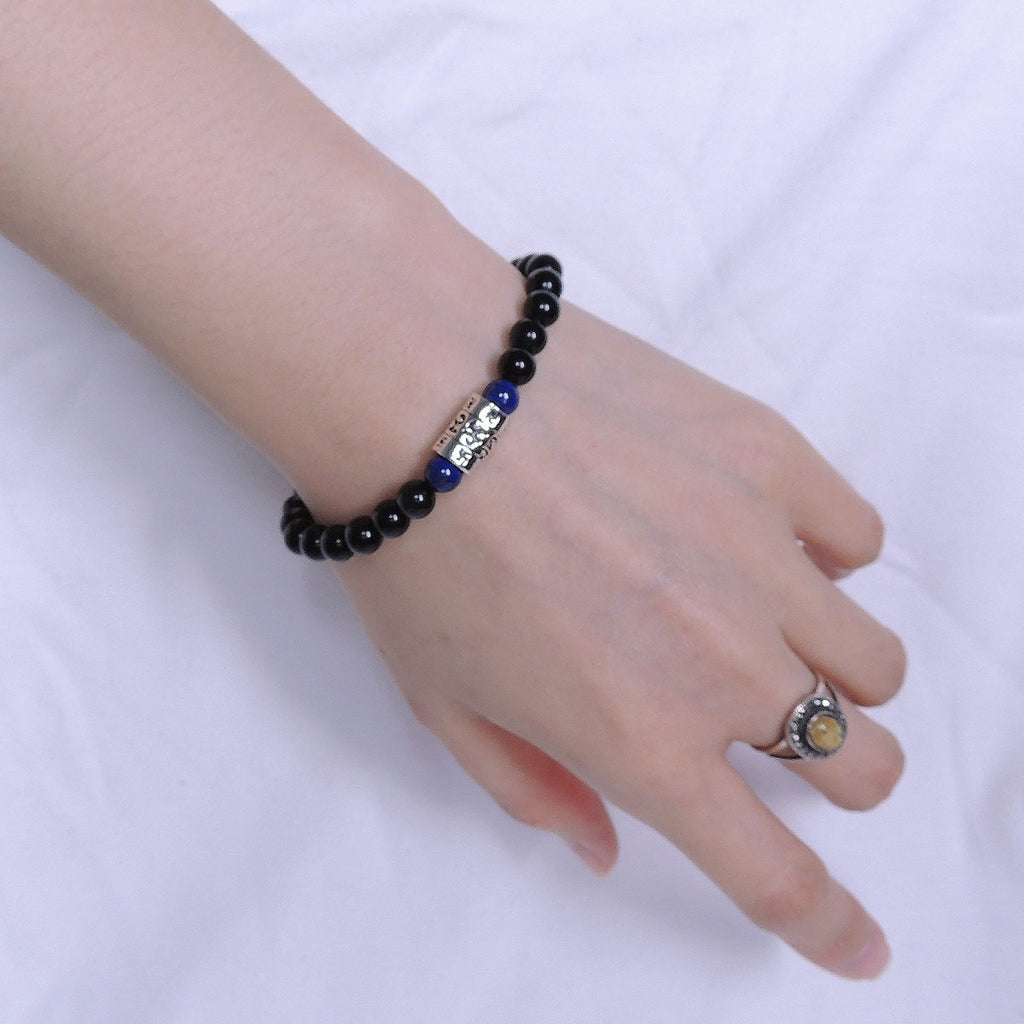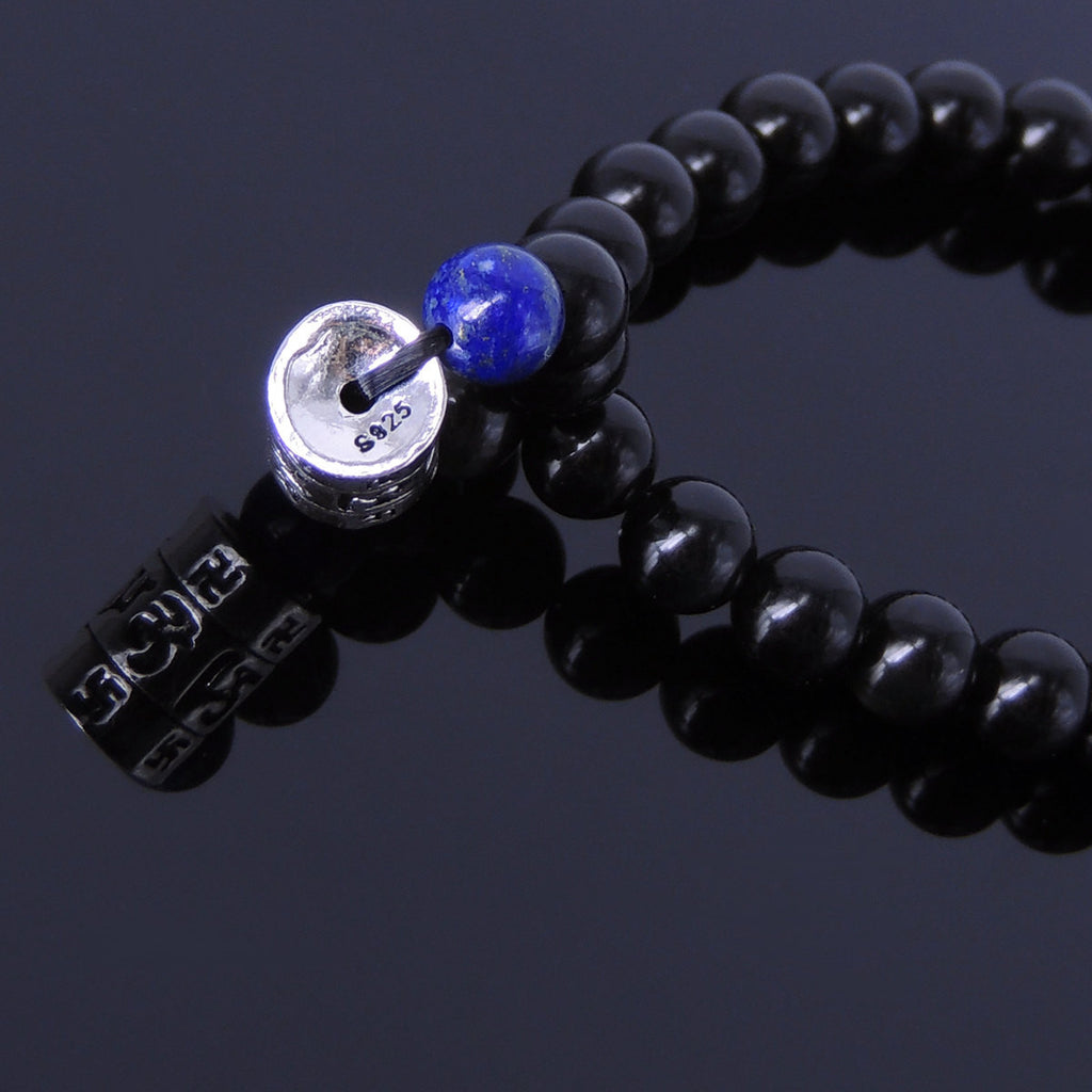 Men Women Lapis Black Obsidian Bracelet Gemstone 925 Sterling Silver Mantra Charm DiyNotion BR281