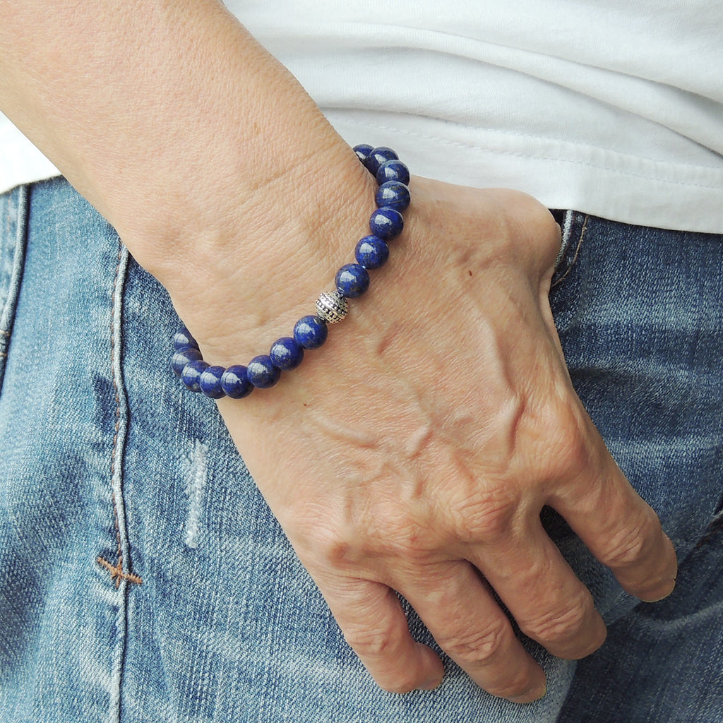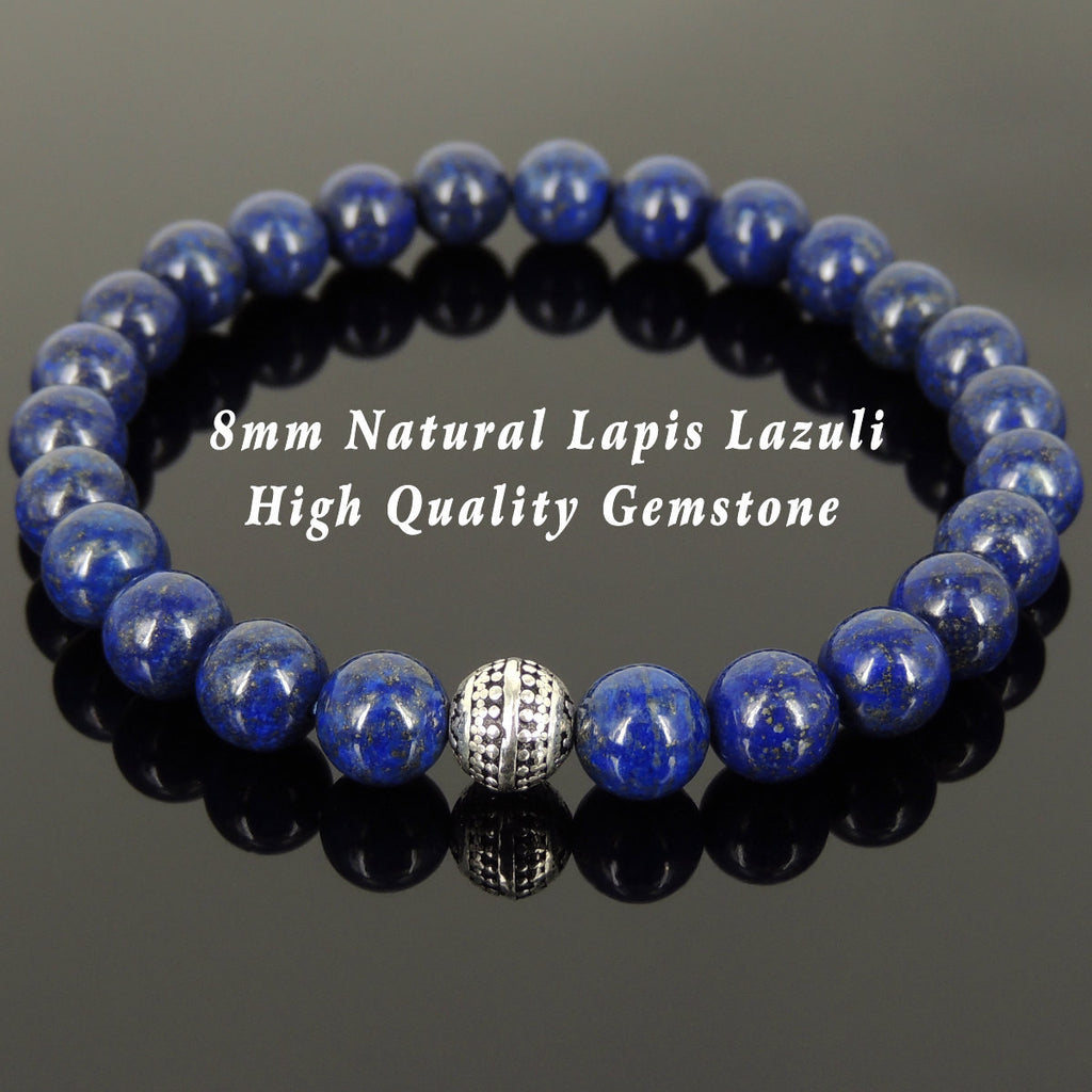 Men Women Lapis Bracelet Gemstone 925 Sterling Silver Round Bead DiyNotion BR456