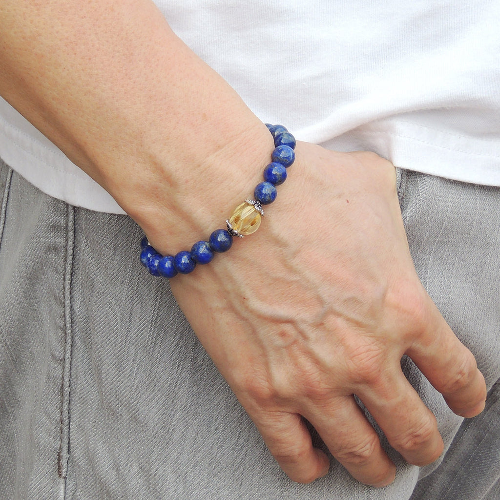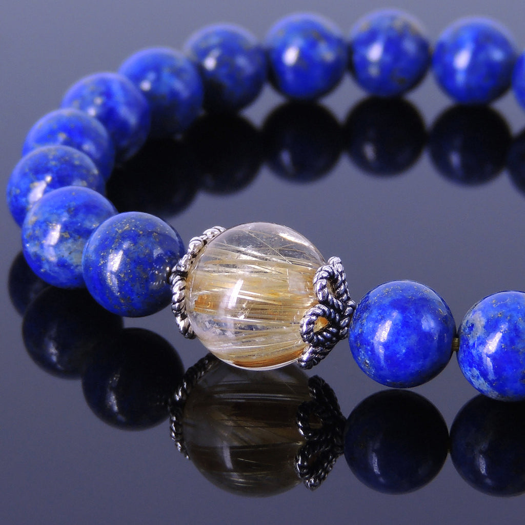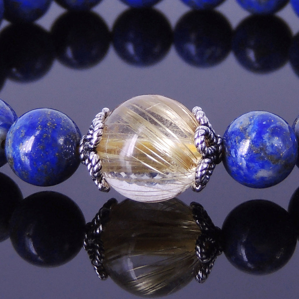 Materials: Gemstone,Lapis Lazuli,Golden Rutilated Quartz,925 Sterling Silver,Elastic Cords
