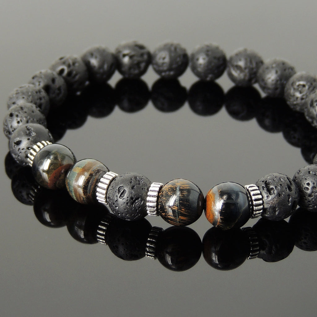 8mm Natural Lava Rock & 8mm Natural Rare Mixed Blue Tiger Eye