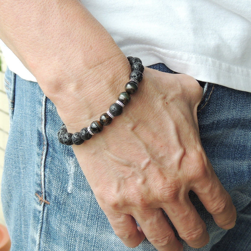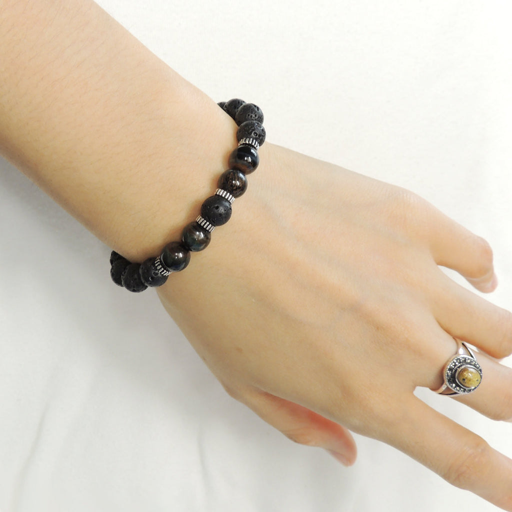 Materials: Healing Stone,Lava Rock,Mixed Blue Tiger Eye,925 Sterling Silver,Elastic Cords