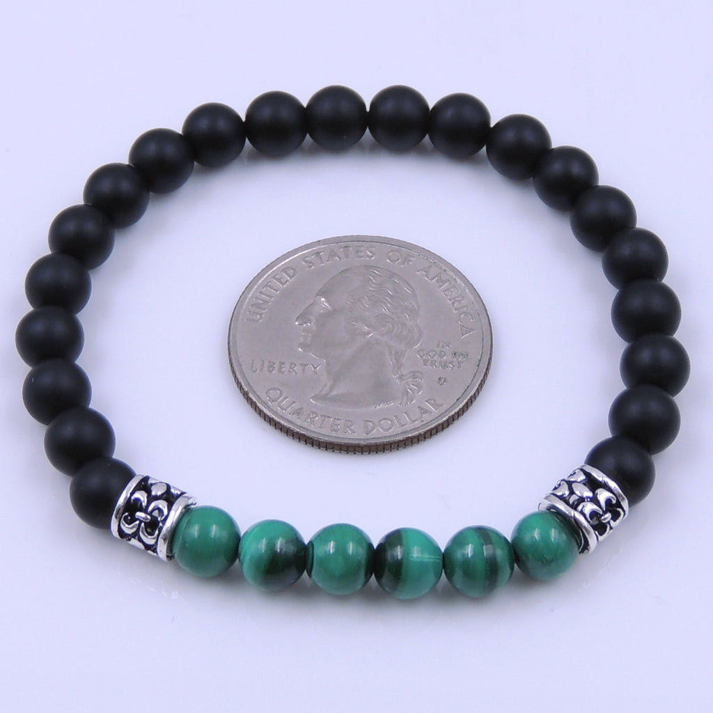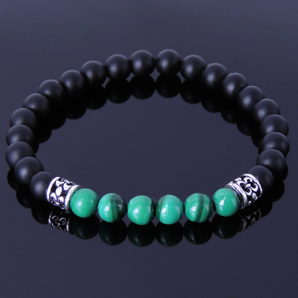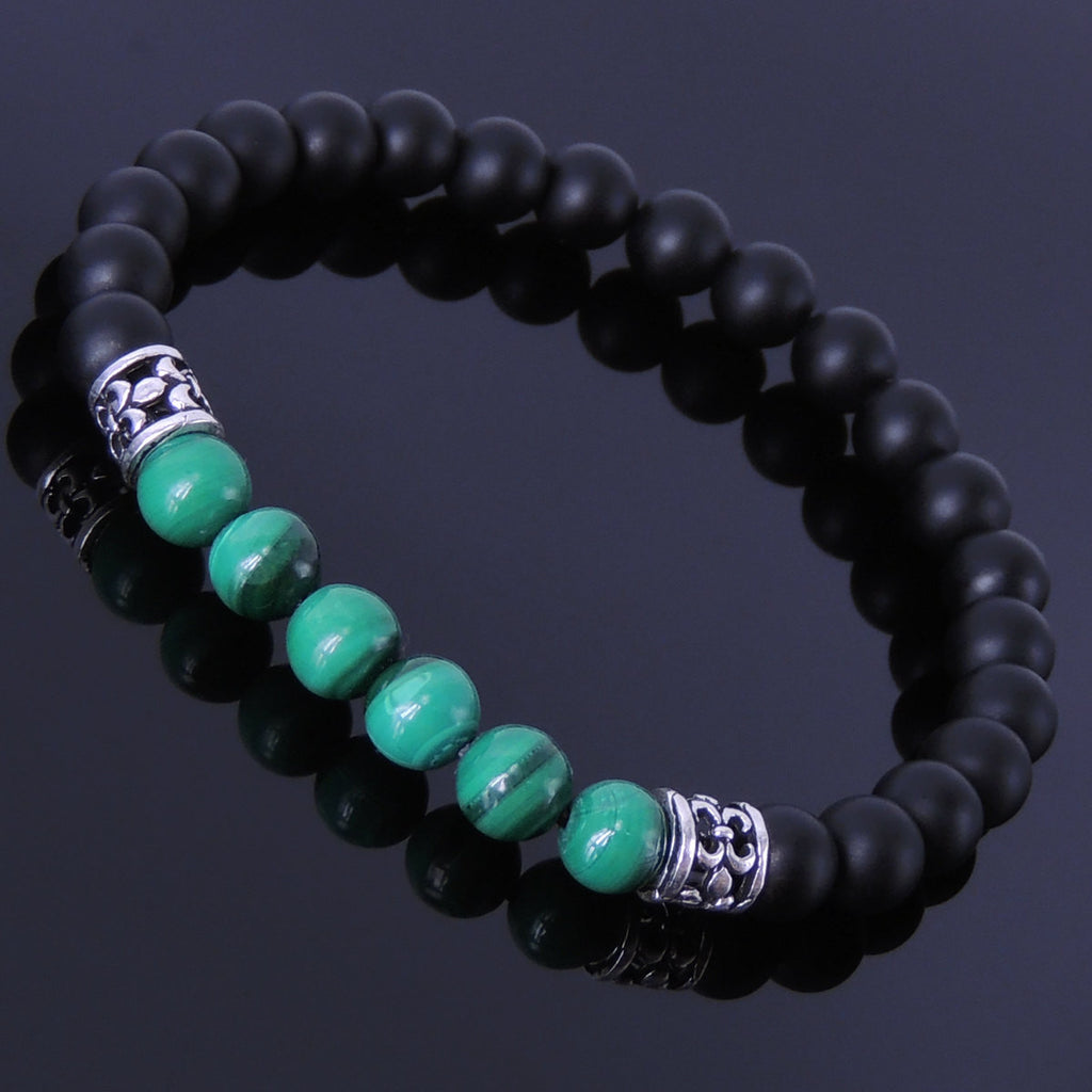 Materials: Gemstone,Matte Black Onyx,Malachite,925 Sterling Silver,Elastic Cords
