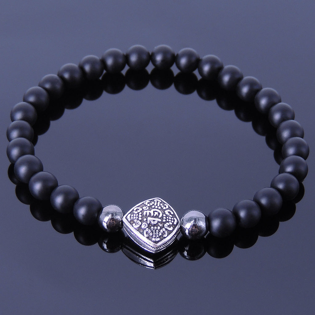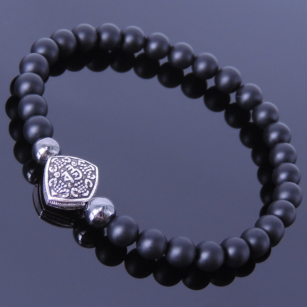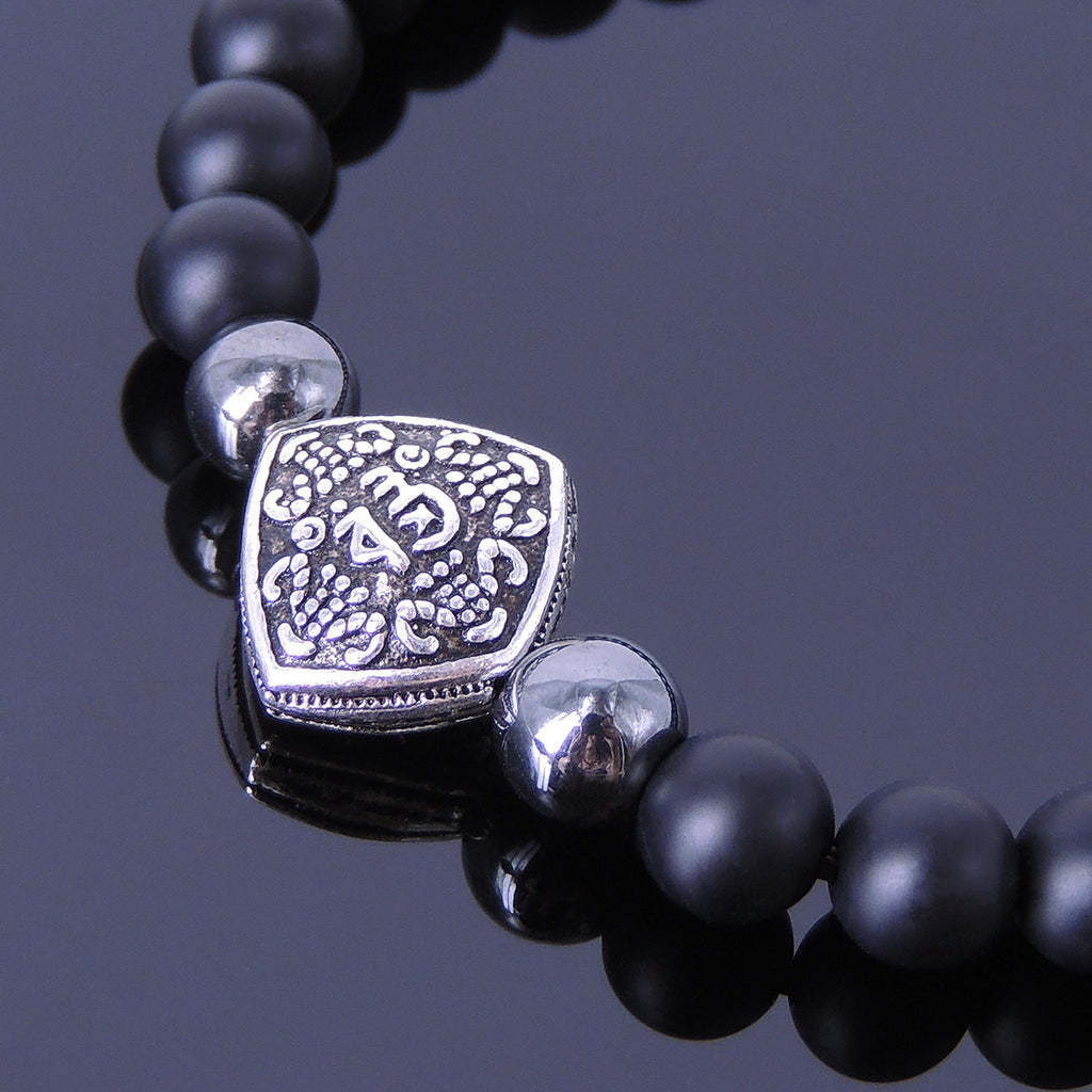 Men Women Matte Black Onyx Hematite Bracelet 925 Sterling Silver Chinese Lucky Charm DiyNotion BR148E