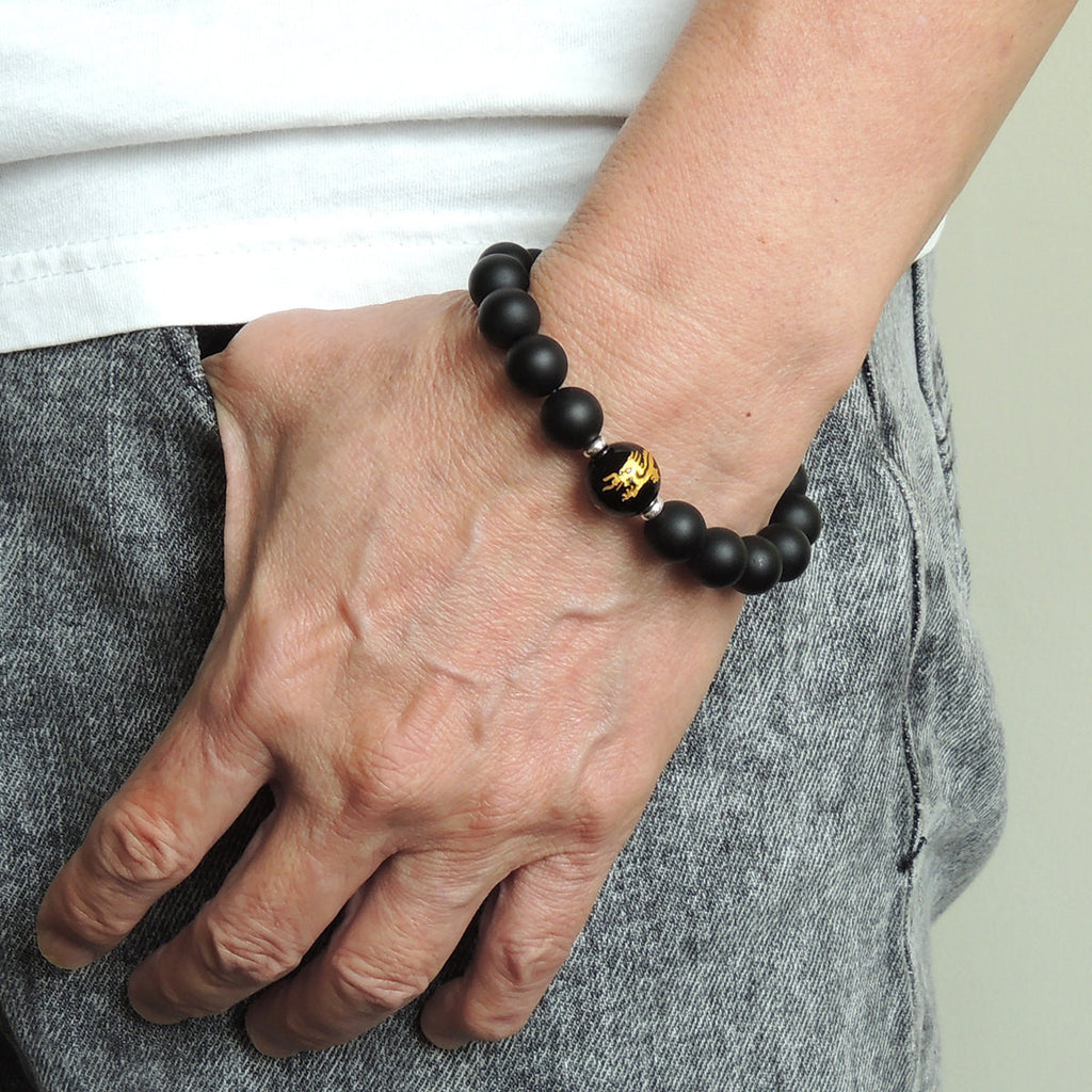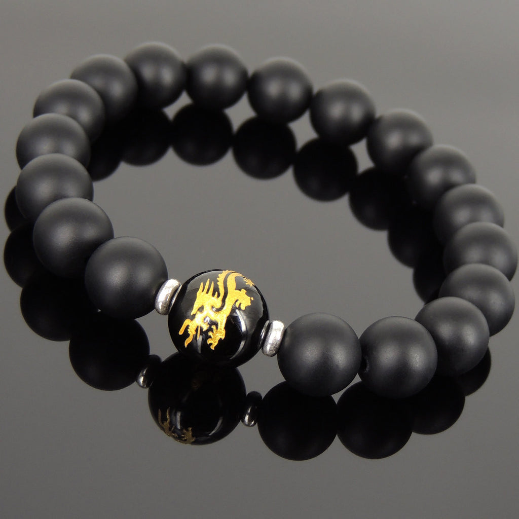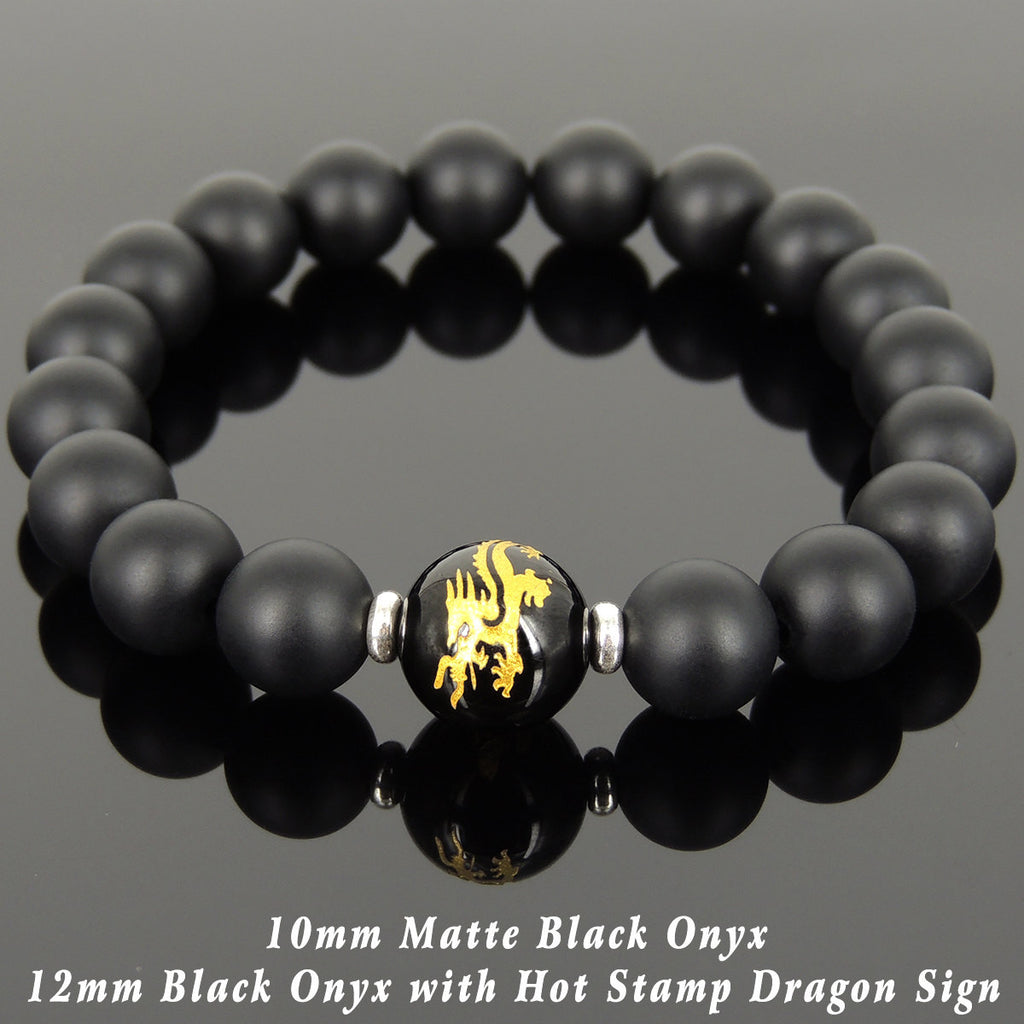 10mm Matte Black Onyx & 12mm Dragon Hot Stamp Bright Black Onyx