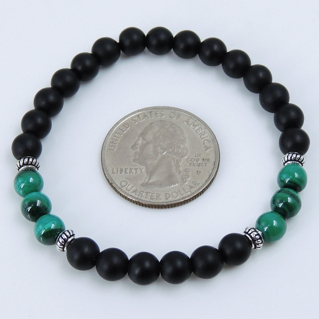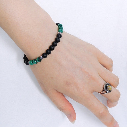 Men/Women Stretchable Bracelet Matte Black Onyx Malachite Gemstone S925 Sterling Silver Spacer DiyNOtion BR241