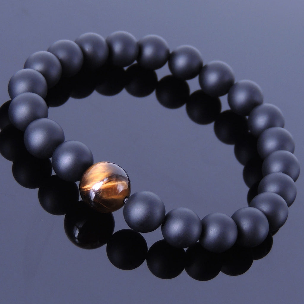 Materials: Gemstone,Matte Black Onyx,Brown Tiger Eye,Elastic Cords