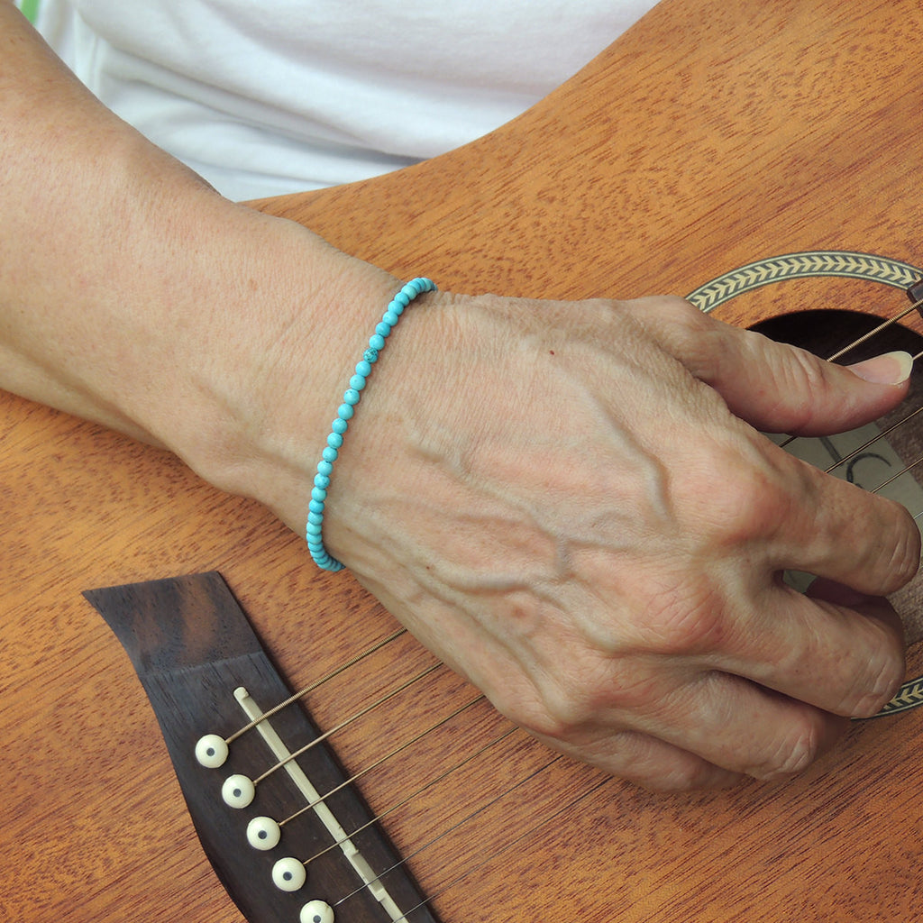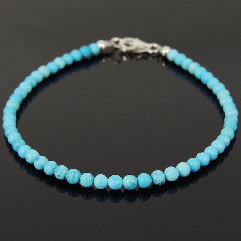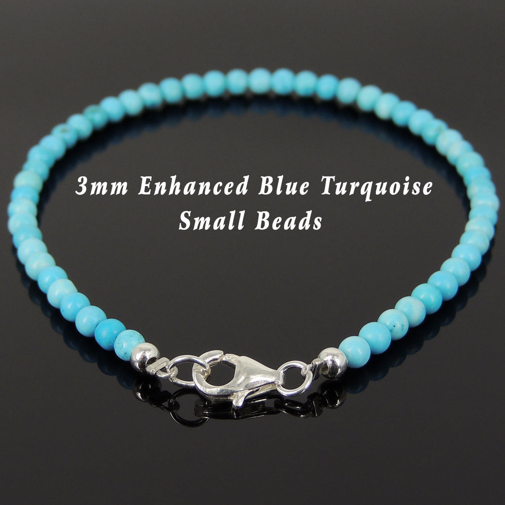 Men's Women 3mm Blue Turquoise 925 Sterling Silver Bracelet Gemstone DiyNotion Handmade BR876