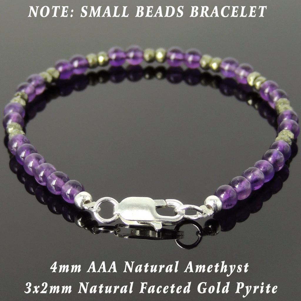 Men's Women 4mm Amethyst Faceted Gold Pyrite Bracelet 925 Sterling Silver Beads Clasp SMALL BEADS DiyNotion Handmade BR1088