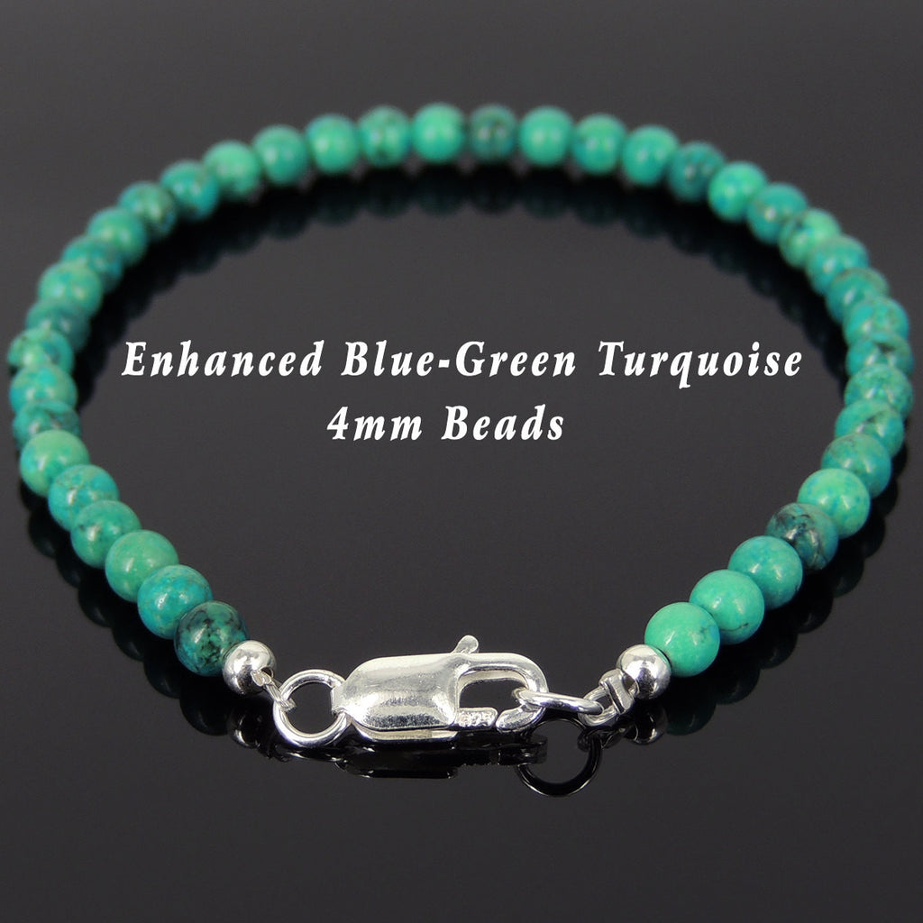 Men's Women 4mm Turquoise 925 Sterling Silver Bracelet Gemstone DiyNotion Handmade BR878