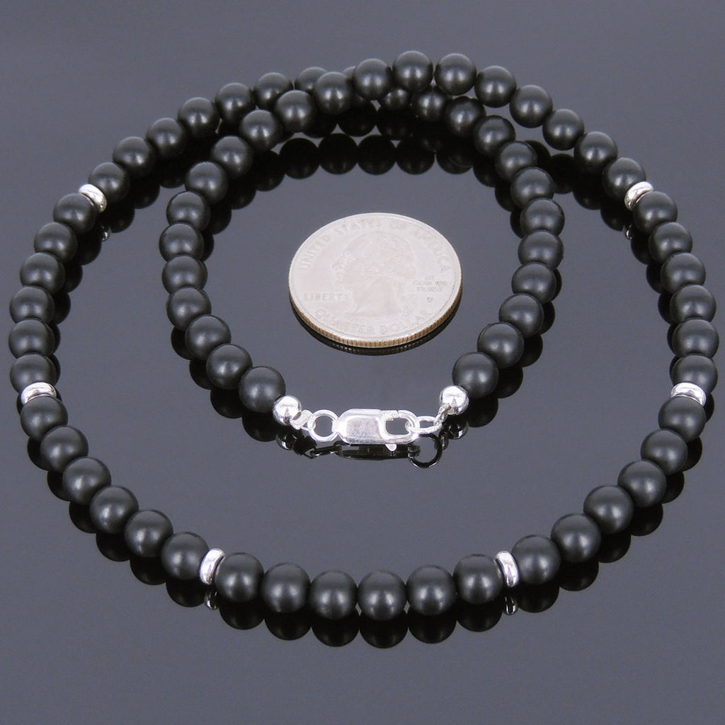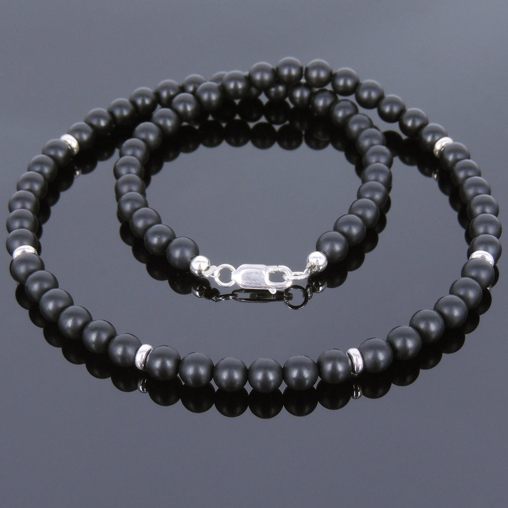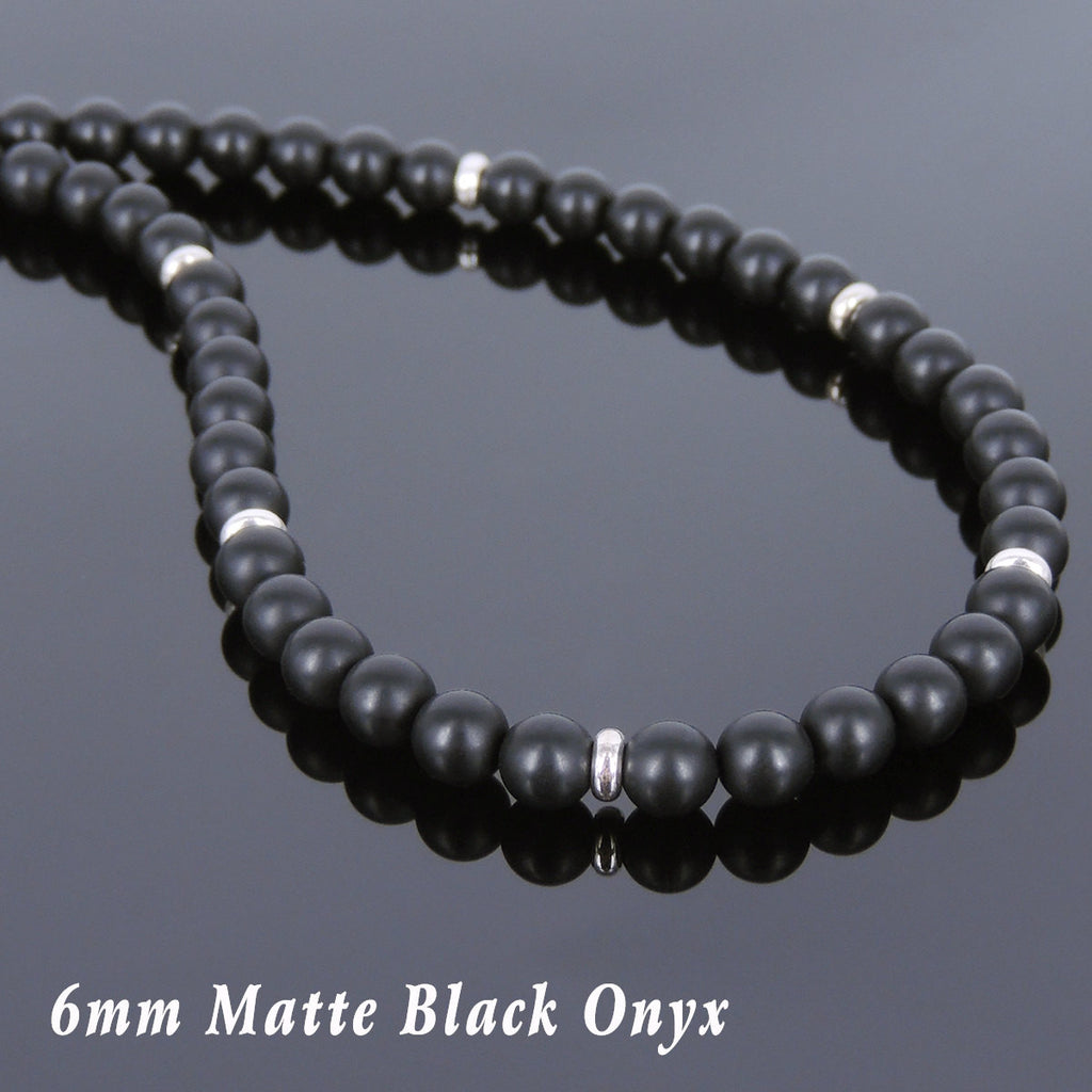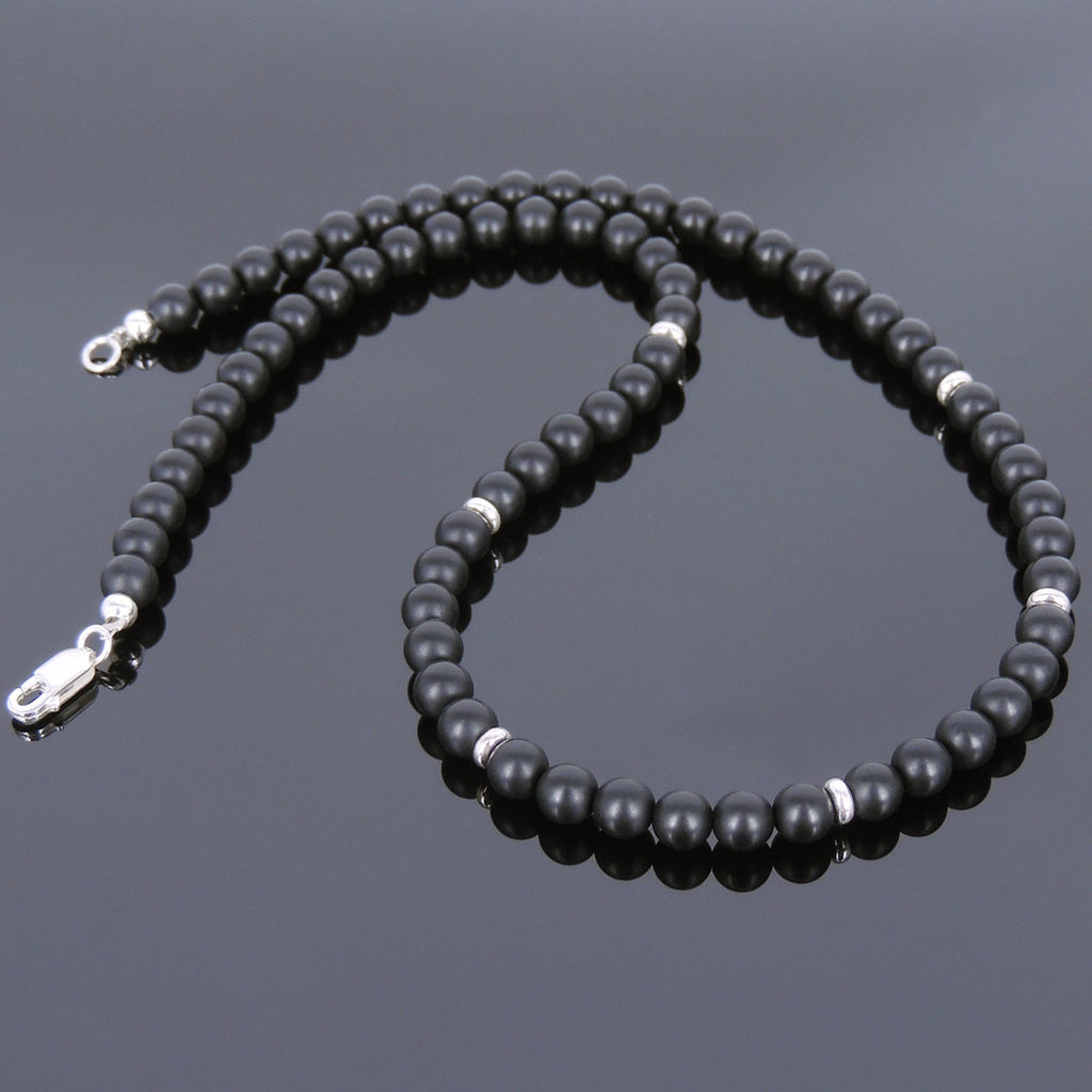 Men's Women 6mm Matte Black Onyx Sterling Silver Necklace Gemstone 925 Spacers Beads Clasp DiyNoion Handmade NK070