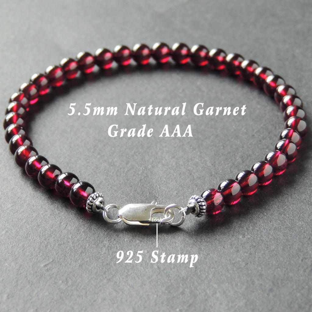 Men's Women AAA Garnet 925 Sterling Silver Bracelet with Clasp DiyNotion Handmade BR358
