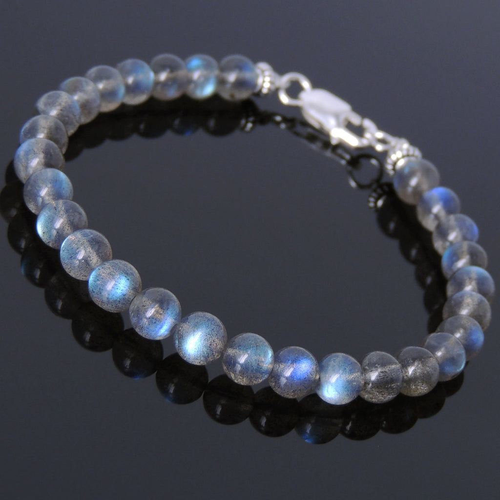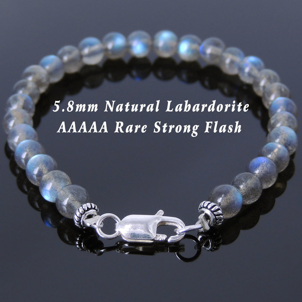 Men's Women AAAAA Strong Flash Labradorite Sterling Silver 925 Spacers & Clasp DiyNotion Handmade BR245