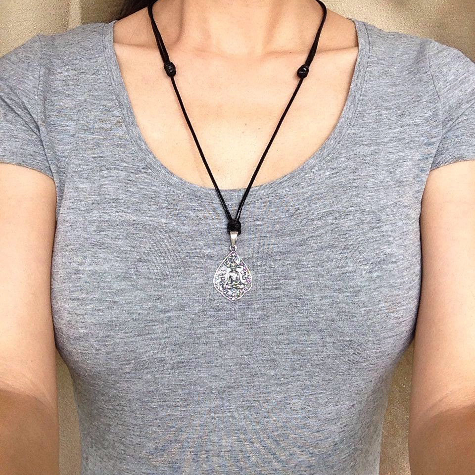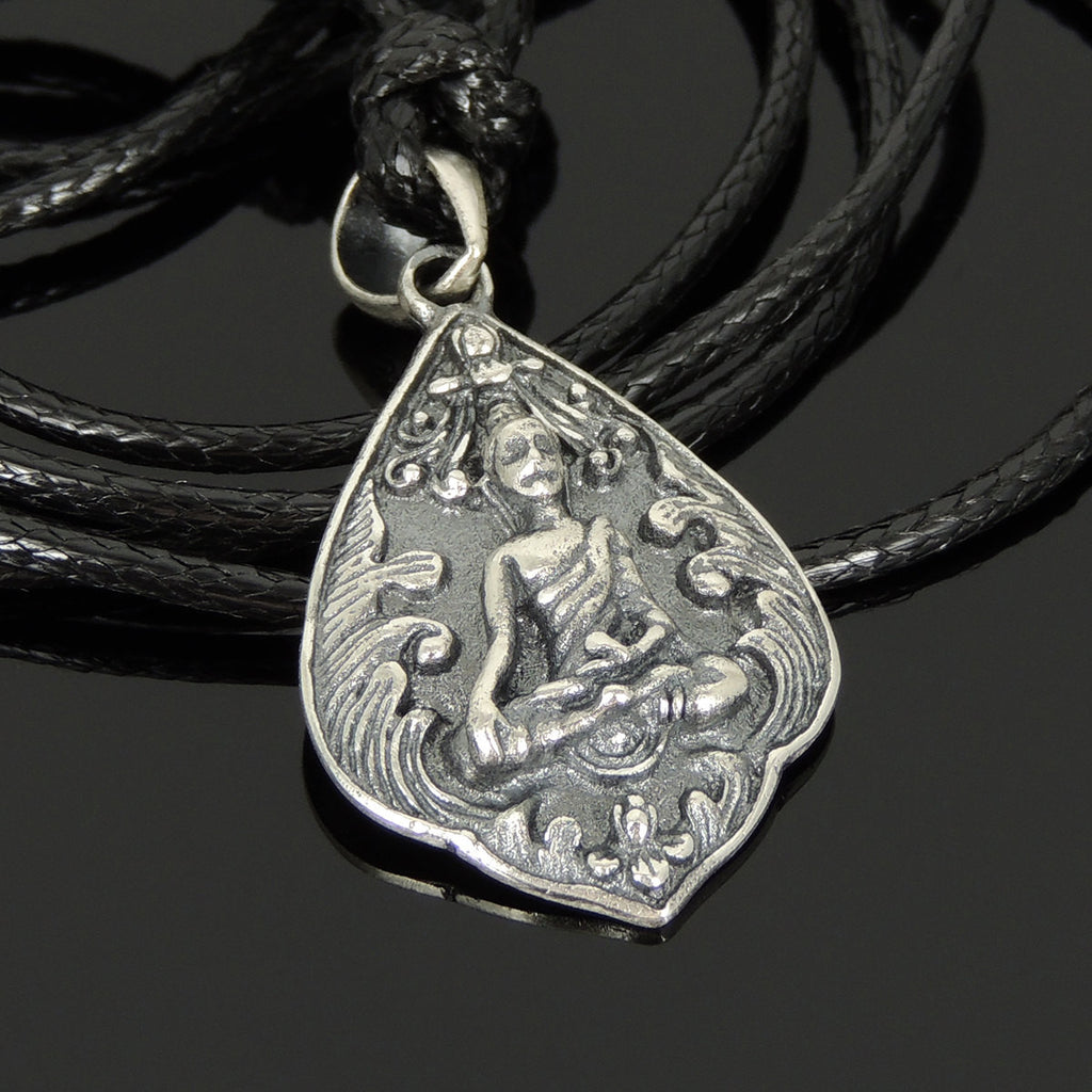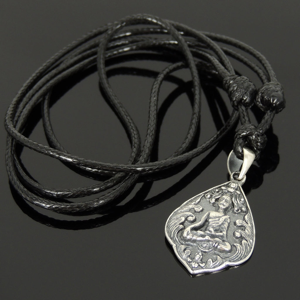 / Men's Women Adjustable Necklace 925 Sterling Silver Sakyamuni Buddha Pendant with Wax Rope DiyNotion NK159