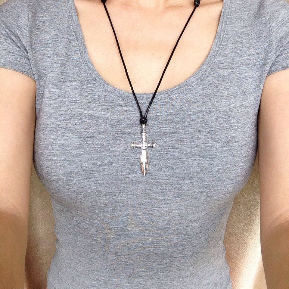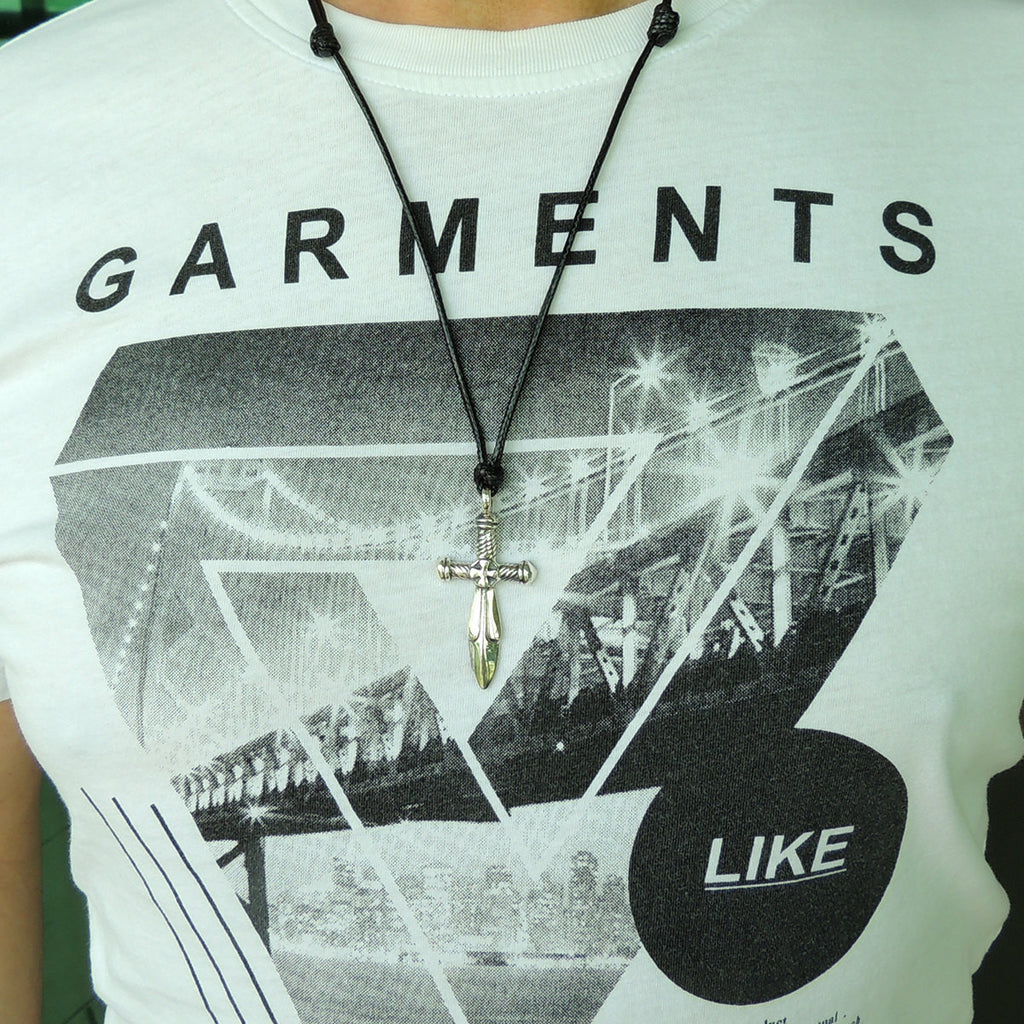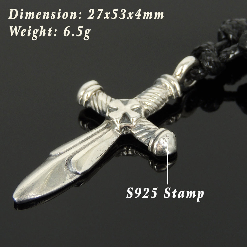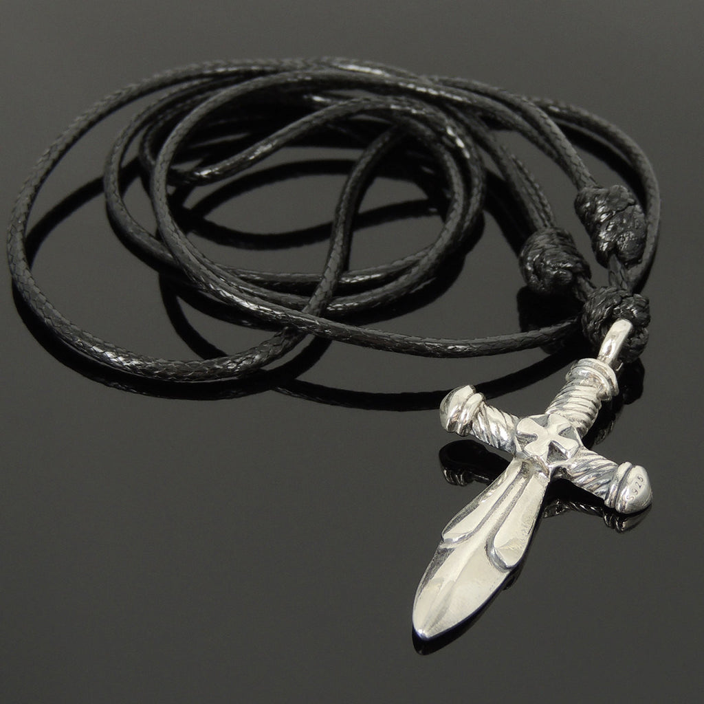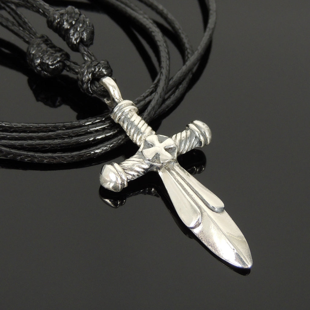 Men's Women Adjustable Necklace 925 Sterling Silver Sword Pendant with Wax Rope DiyNotion NK157