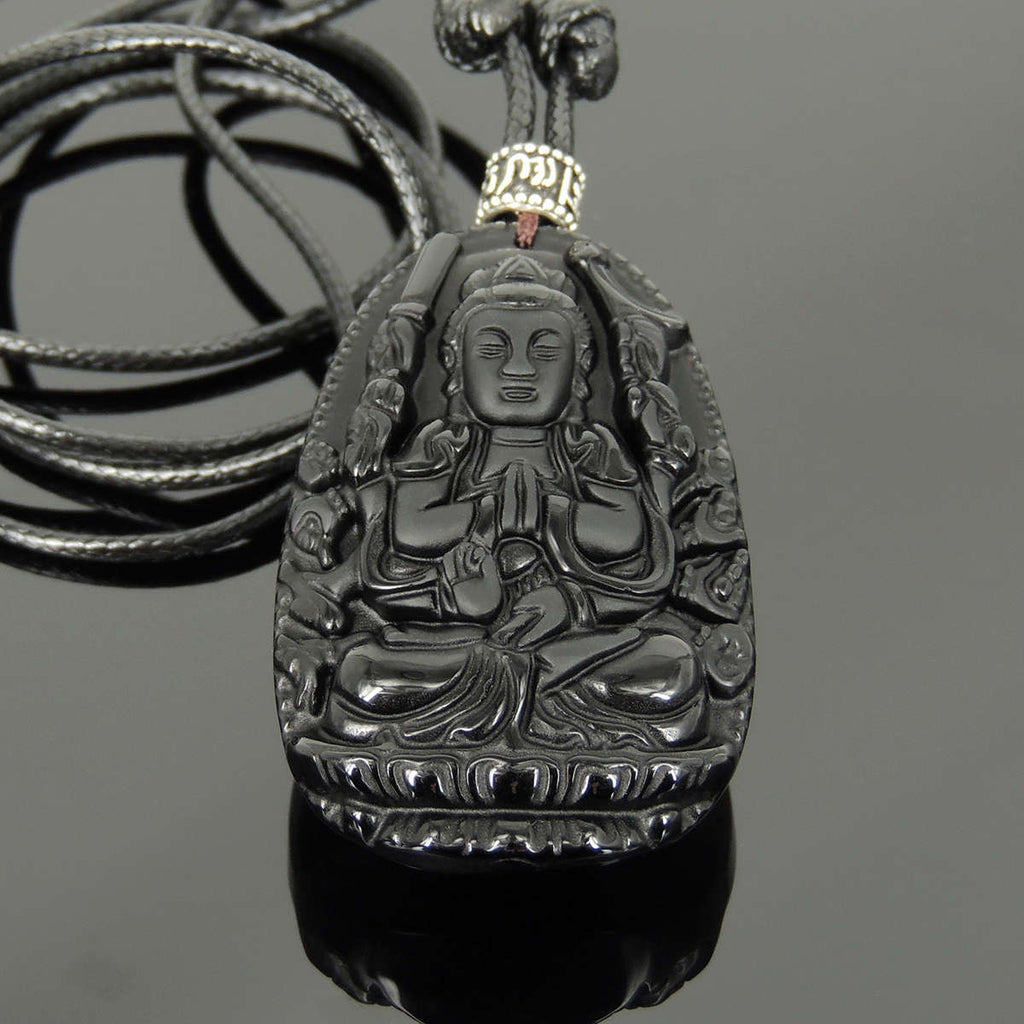 33x51x13mm Natural Black Obsidian Buddha Pendant