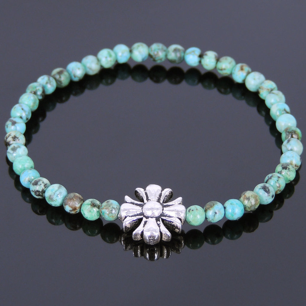 Materials: Gemstone,4mm African Green Turquoise,925 Sterling Silver,Elastic Cords