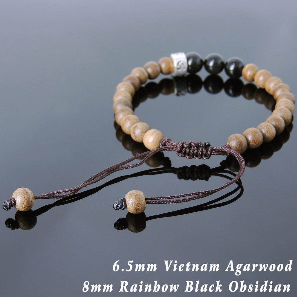 Materials: Agarwood,Black Obsidian,925 Sterling Silver,Chinese Strong Braided Cords