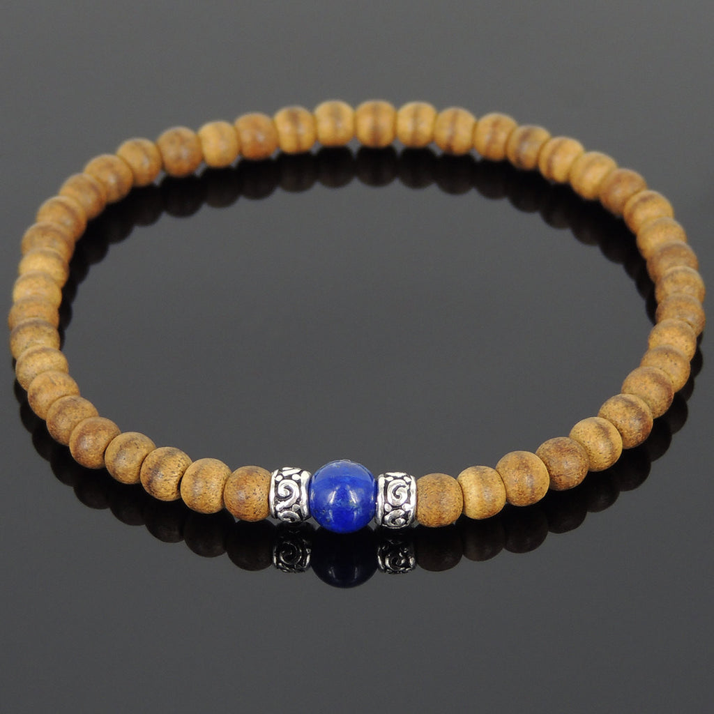Materials: Agarwood,Gemstone,Lapis,925 Sterling Silver,Elastic Cords