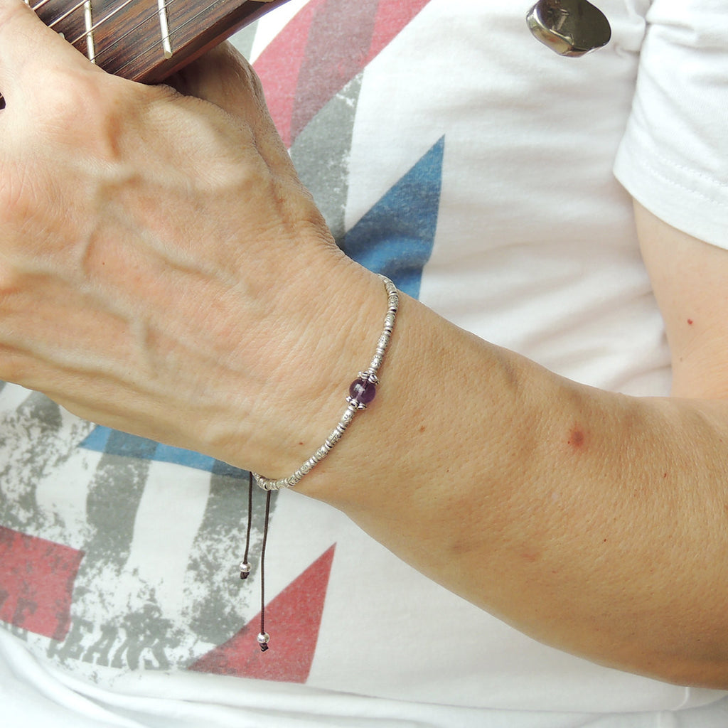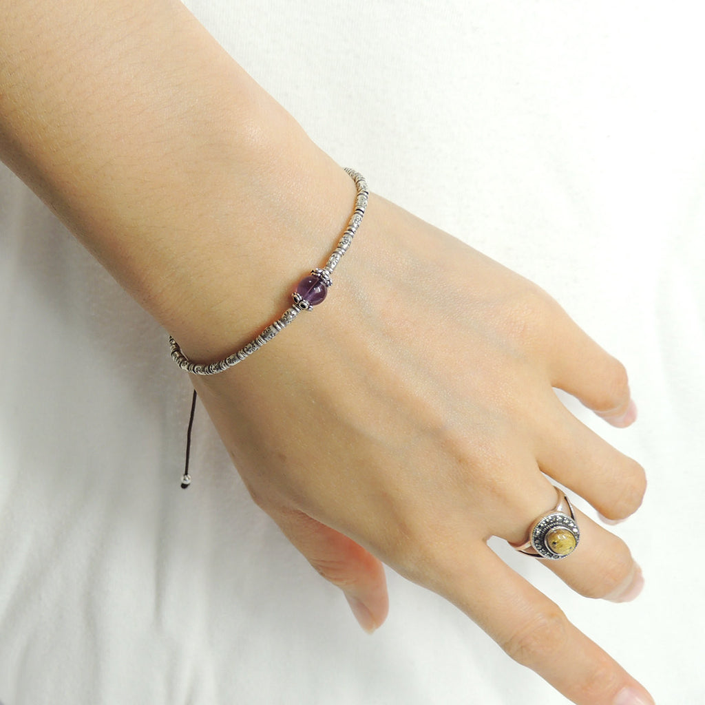 Men's Women Amethyst Adjustable Braided Bracelet 925 Sterling Silver Handmade BeadsDiyNotion BR830