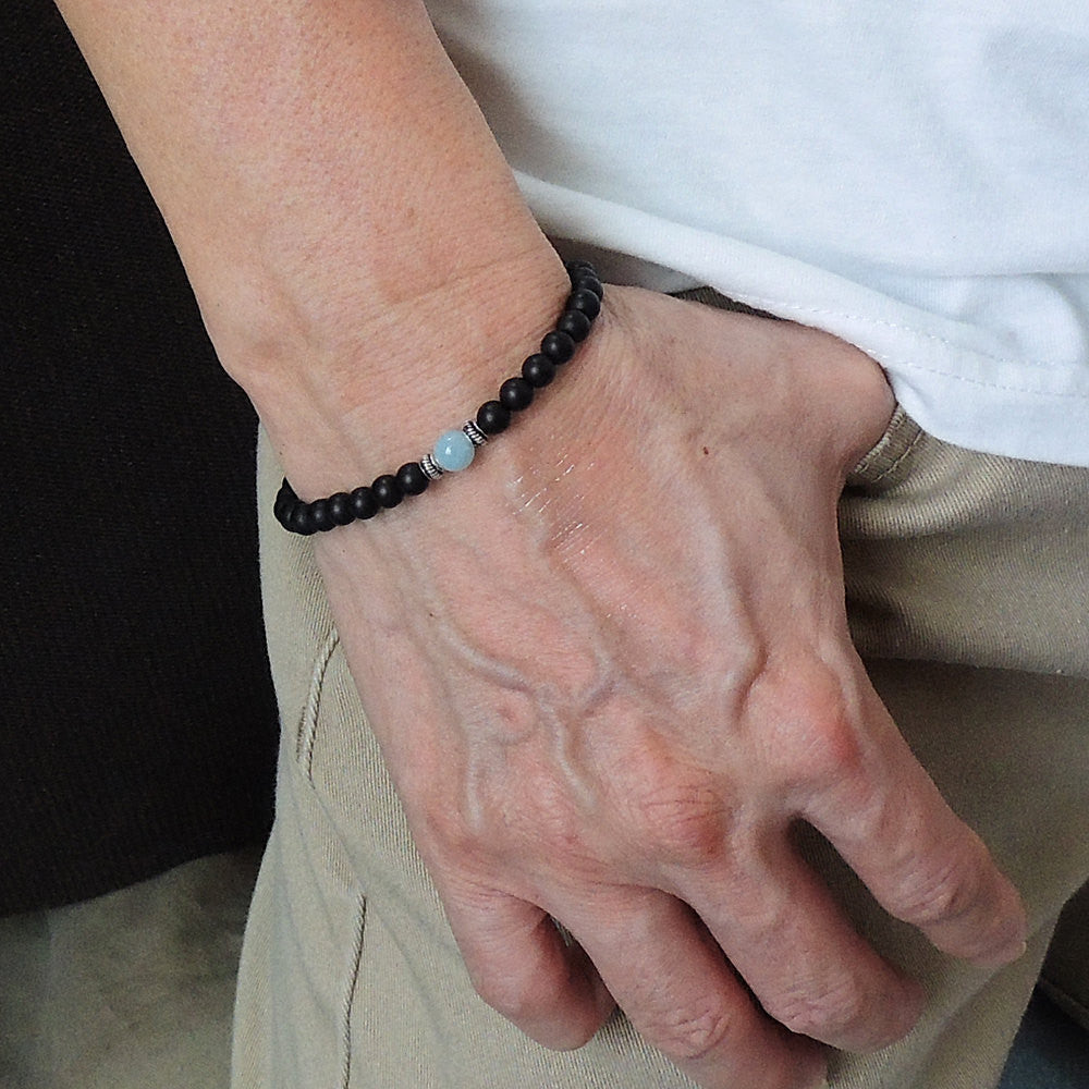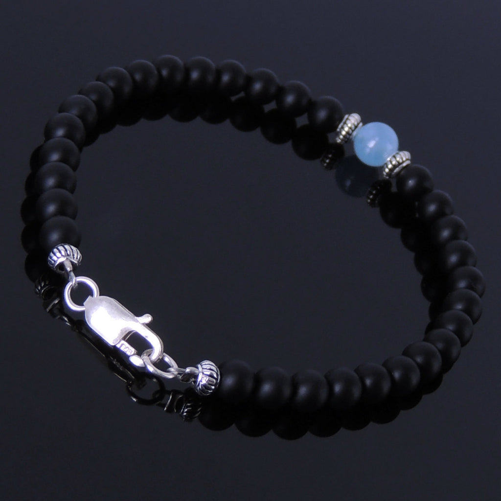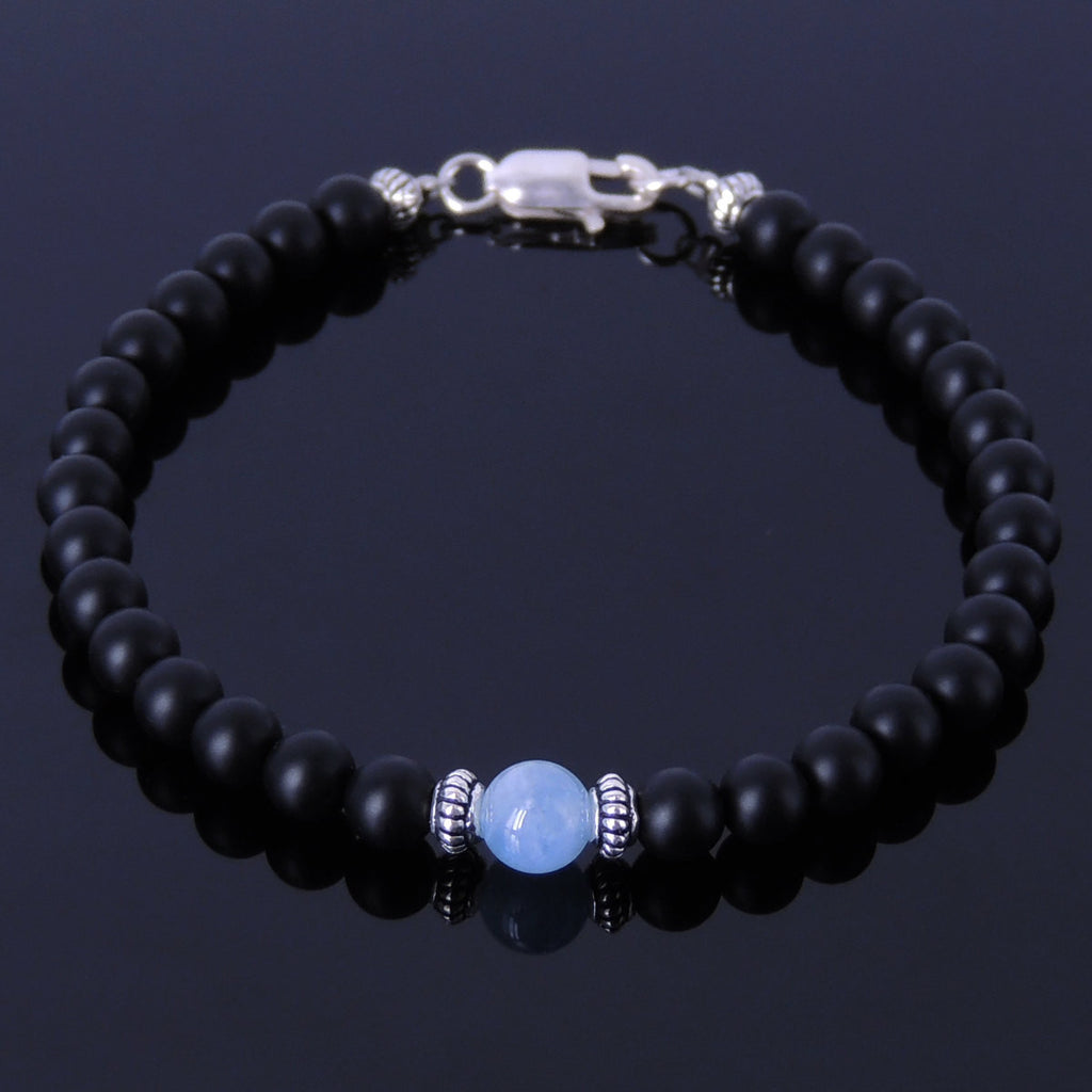 Mens Women Aquamarine Matte Black Onyx Bracelet Sterling Silver 925 Clasp DiyNotion Handmade BR209