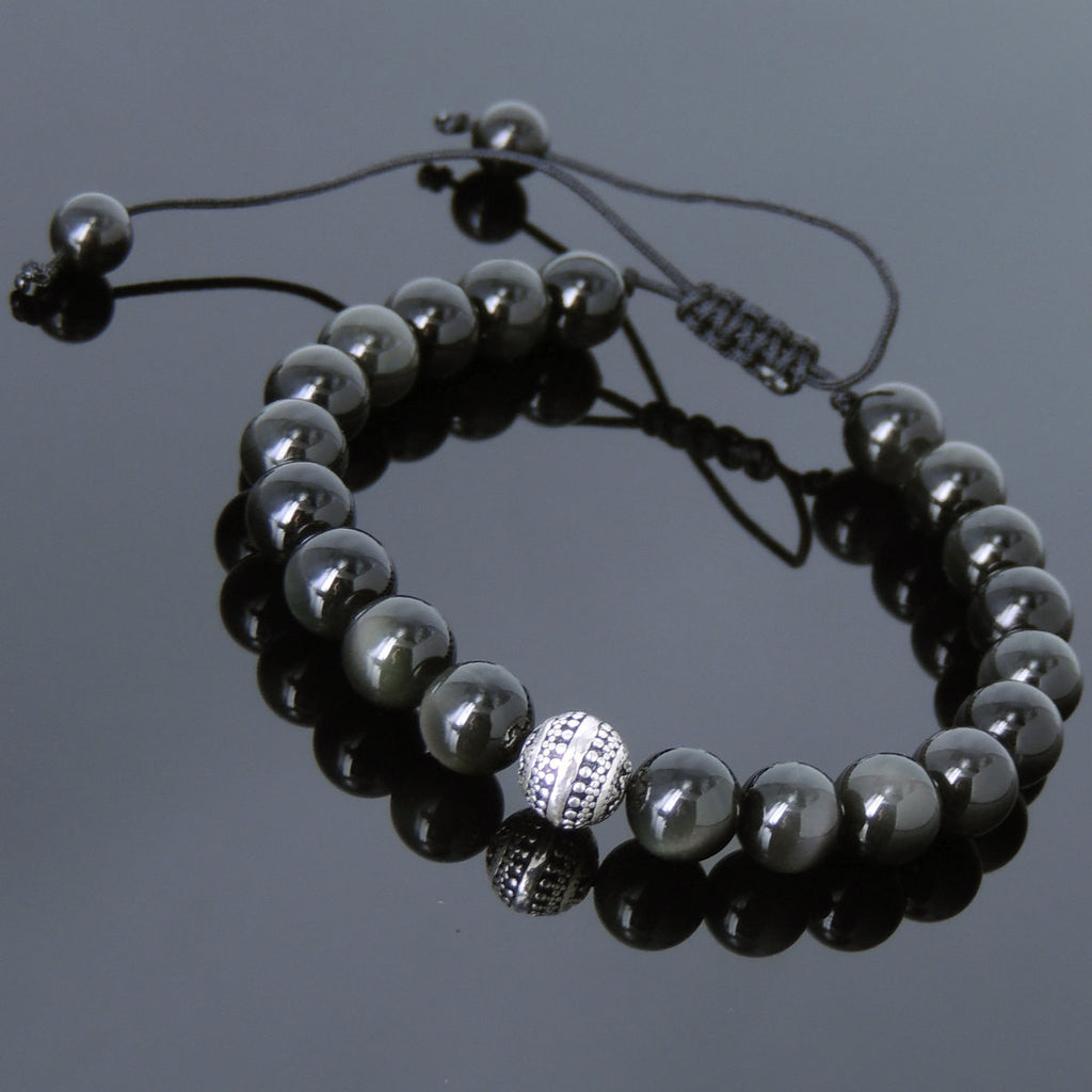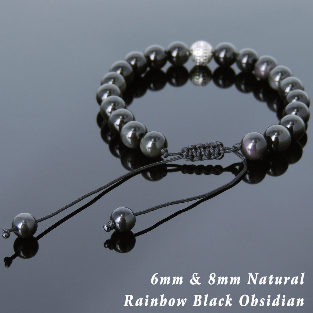 Materials: Gemstone,Black Obsidian,925 Sterling Silver,Chinese Strong Braided Cords