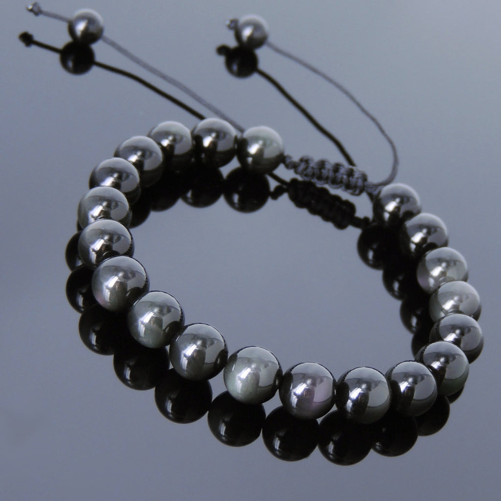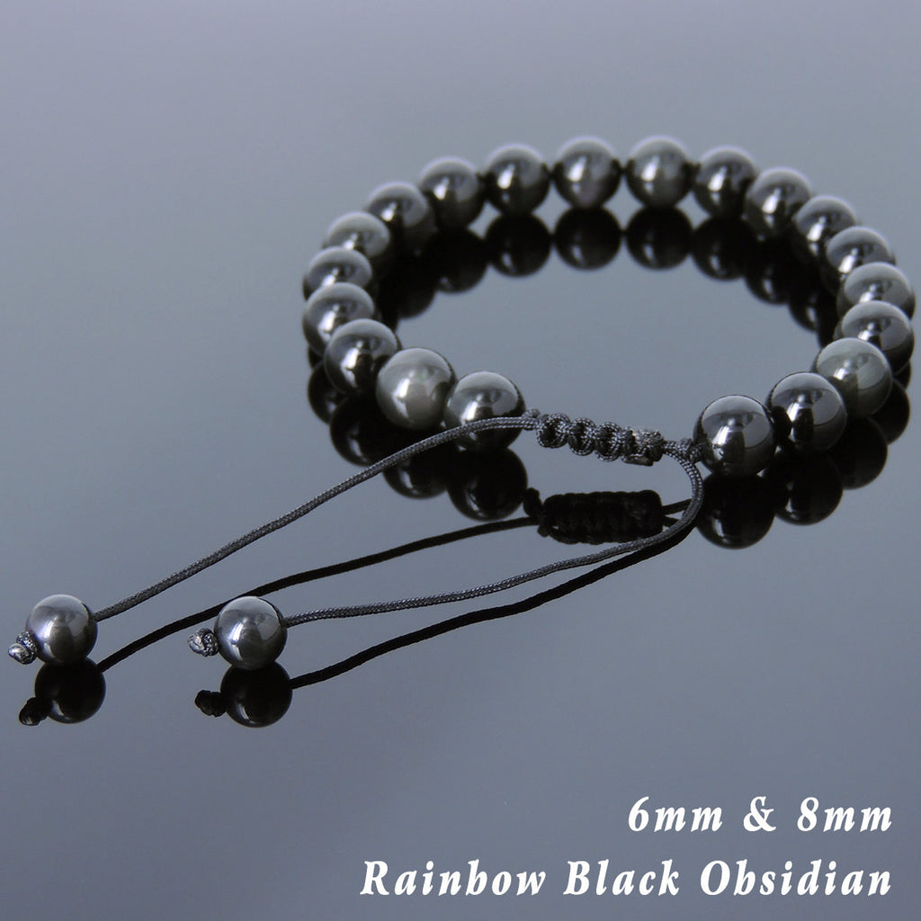 Men's Women Black Obsidian Adjustable Braided Bracelet DiyNotion Handmade BR819