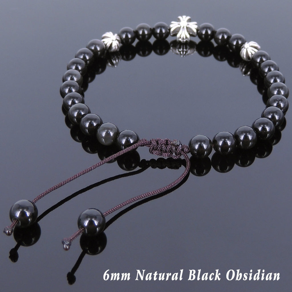 Materials: Gemstone,Black Obsidian,Tibetan Silver,Chinese Strong Braided Cords