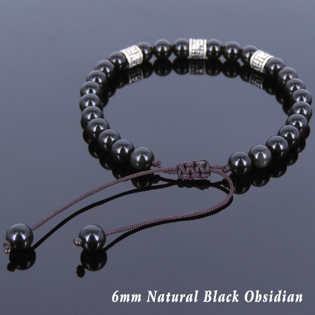 Materials: Gemstone,Black Obsidian,Tibetan Silver,Chinese Strong Braided Cords