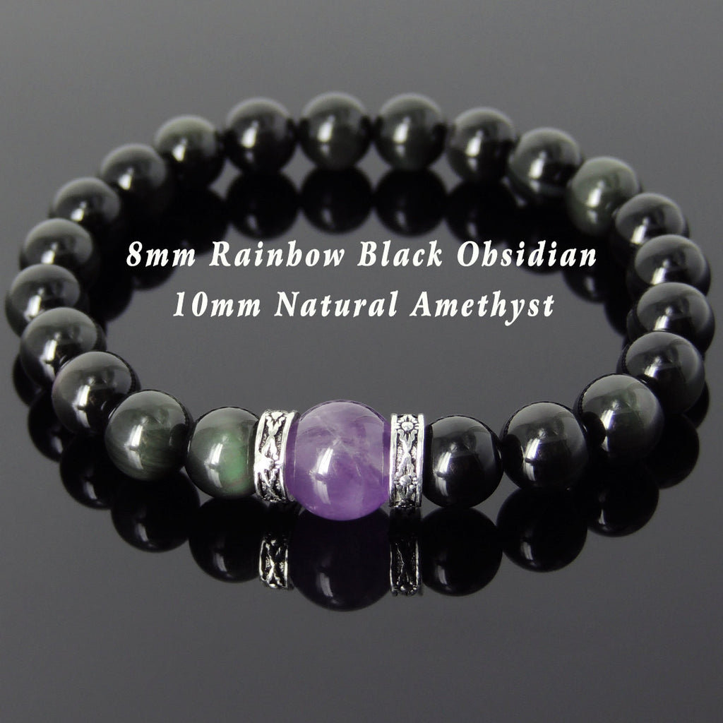 Materials: Gemstone,Healing Stone,Black Obsidian,Amethyst,925 Sterling Silver