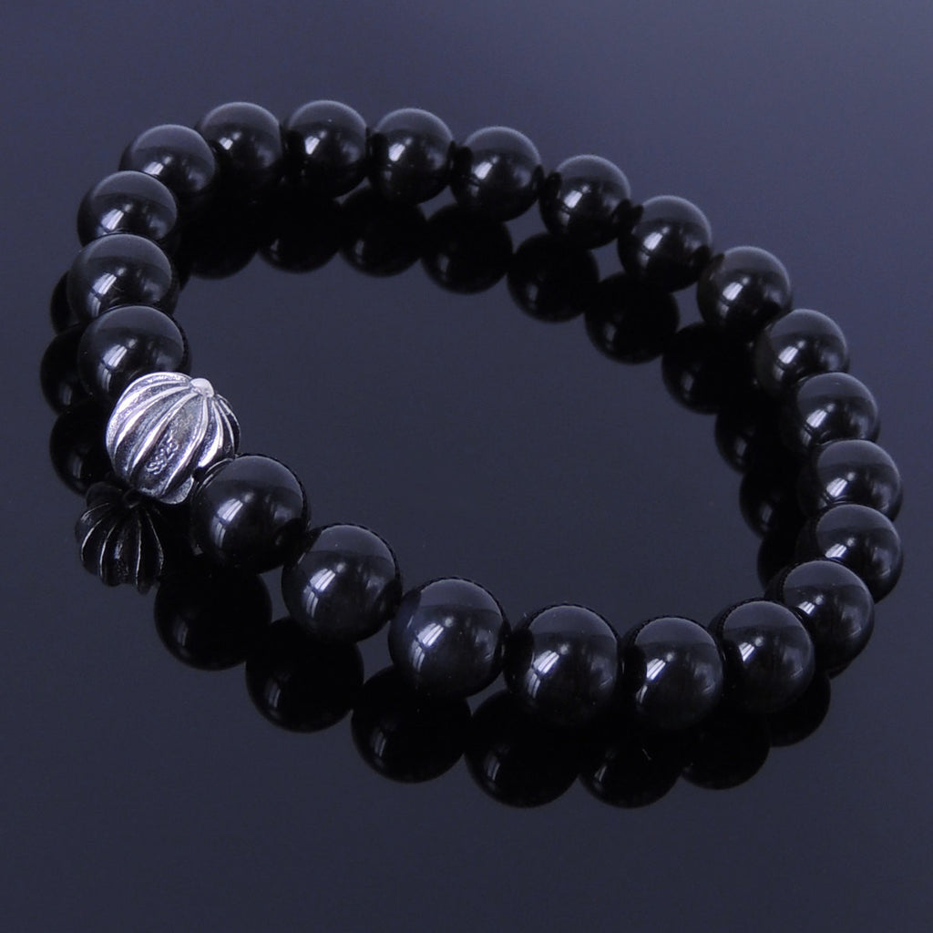 Materials: Gemstone,Black Obsidian,925 Sterling Silver,Elastic Cords