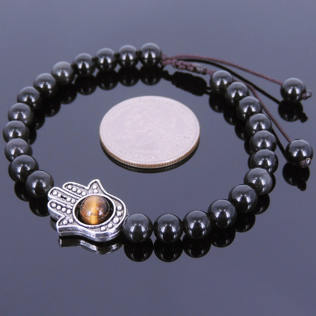 Men's Women Black Obsidian Tiger Eye Adjustable Braided Bracelet Tibetan Silver Hamsa Hand Buddhism DiyNotion T113