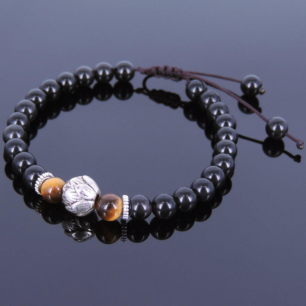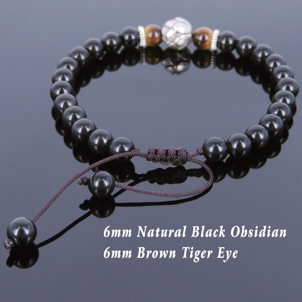 Materials: Gemstone,Black Obsidian,Brown Tiger Eye,Tibetan Silver,Chinese Strong Braided Cords