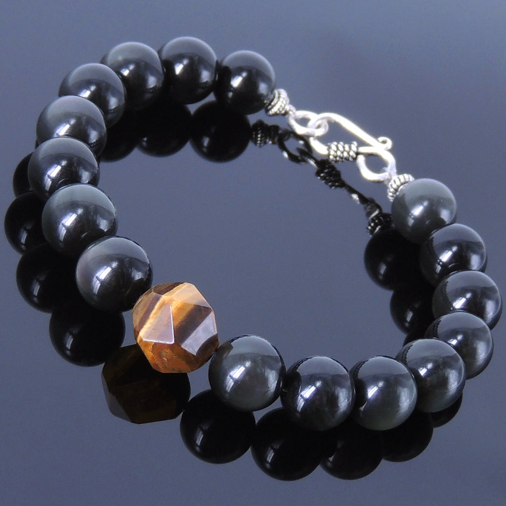 Materials: Gemstone,Black Obsidian,Brown Tiger Eye,925 Sterling Silver
