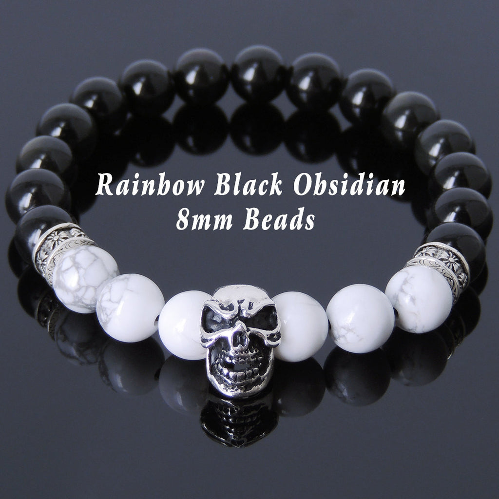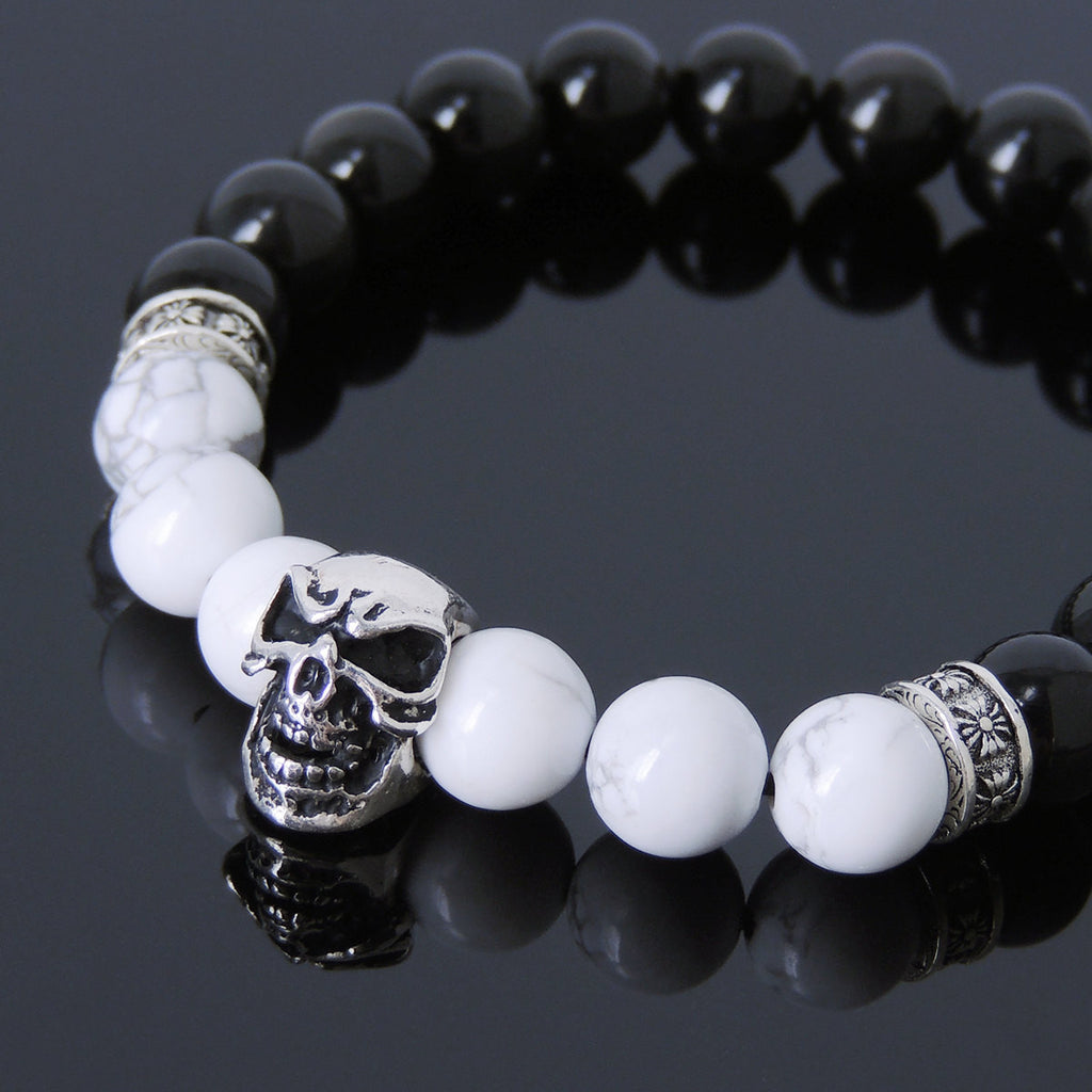 Materials: Gemstone,Black Obsidian,White Howlite,925 Sterling Silver,Elastic Cords