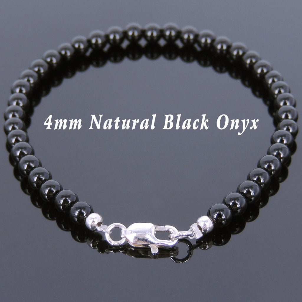 Men's Women Black Onyx 925 Sterling Silver Bracelet Bead Clasp Gemstone DiyNotion Handmade BR617