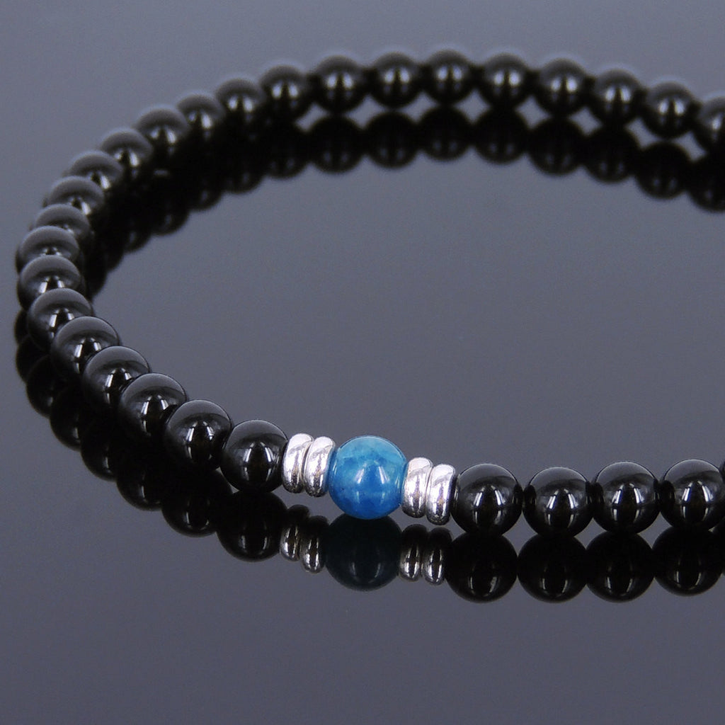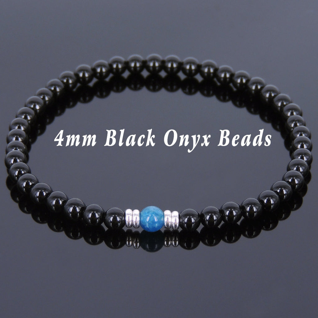 Men's Women Black Onyx Apatite Bracelet 925 Sterling Silver Spacers DiyNotion Handmade BR572