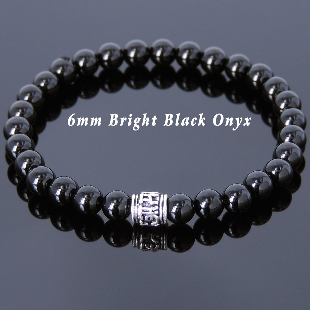 Men's Women Black Onyx Bracelet 925 Sterling Silver OM Bead DiyNotion Handmade BR732
