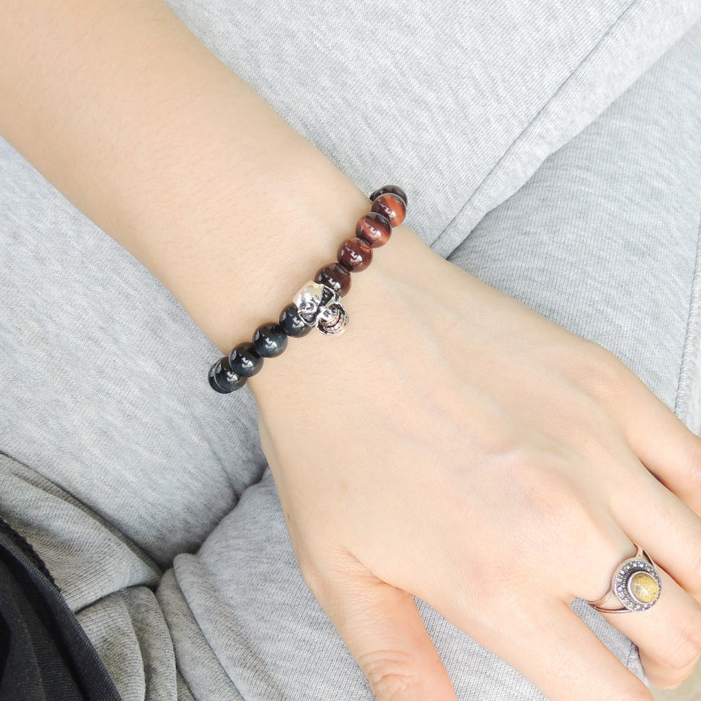 Men's Women Blue Red Tiger Eye Bracelet 925 Sterling Silver Skull Bead DiyNotion Handmade BR619E