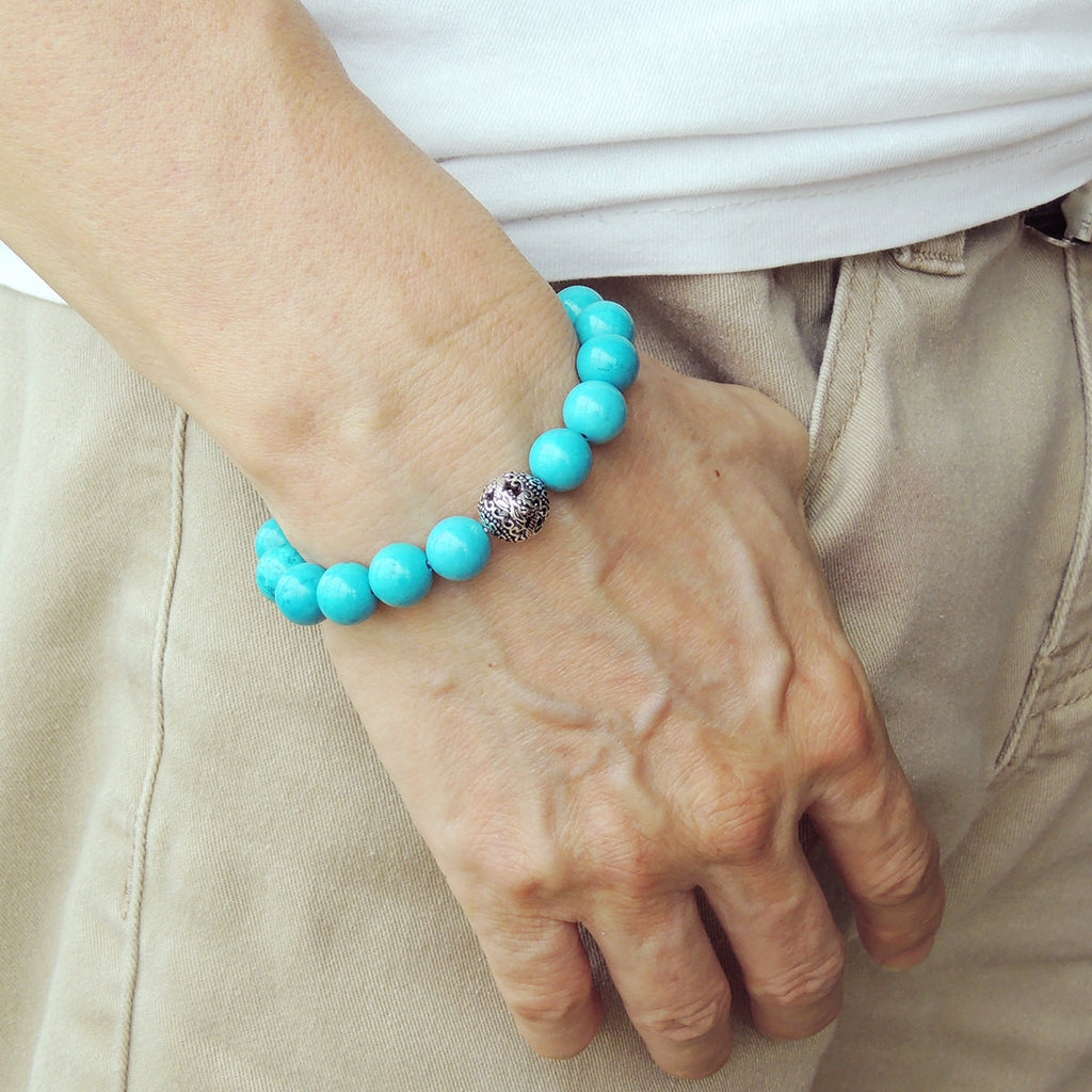 It has been told that because of its heavenly energy, turquoise is believed to provide not only protection from any negativity, but also a clear connection to the purity of natural elements,especially water and air. The water energy in turquoise can facilitate a better flow of energy in one's body, thus promoting a gentle detoxification and improving the state of one's immune system. Turquoise works beautifully with lapis lazuli, as both stones bring a pure sea-to-sky energy that is needed for one's growth and overall well-being. Turquoise can also help one receive higher guidance and direction, as well as live life with more joy and happiness. The calming and uplifting colour of turquoise can bring peace and higher energy to any relationship.