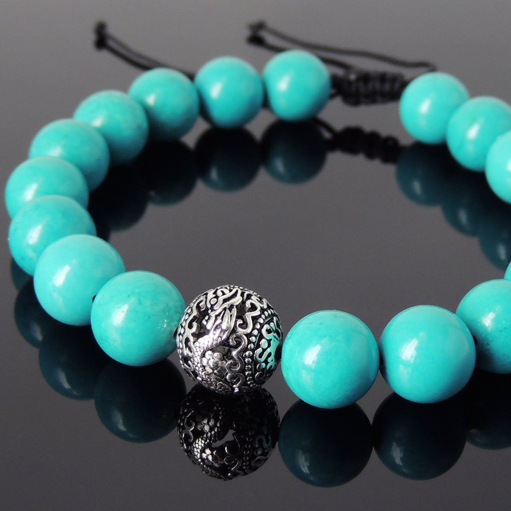 Men's Women Blue Turquoise Adjustable Braided Bracelet 925 Sterling Silver Dragon Bead DiyNotion BR920
