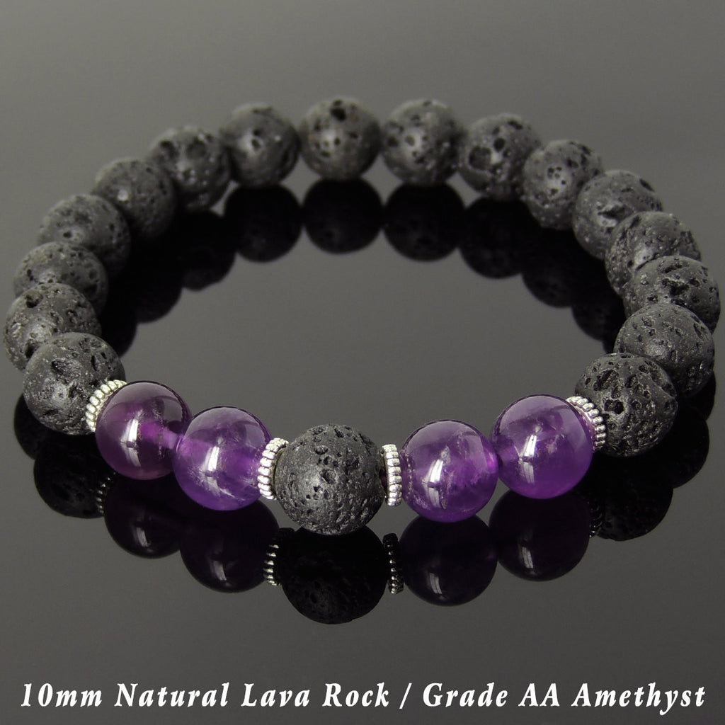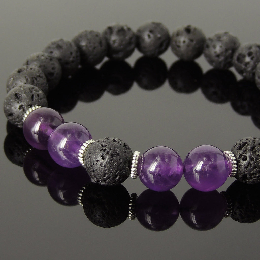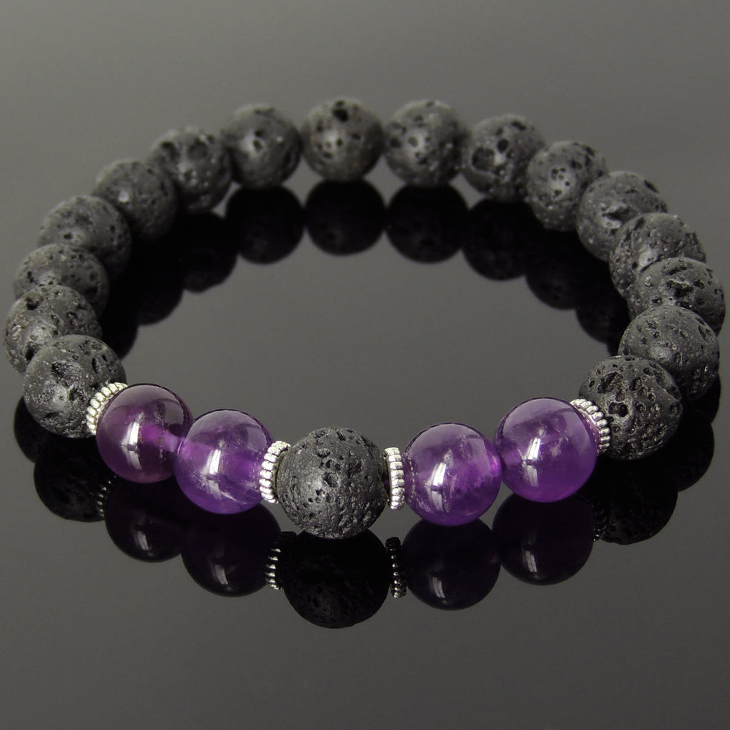 Materials: Gemstone,Lava Rock,AA Amethyst,Tibetan Silver,Elastic Cords