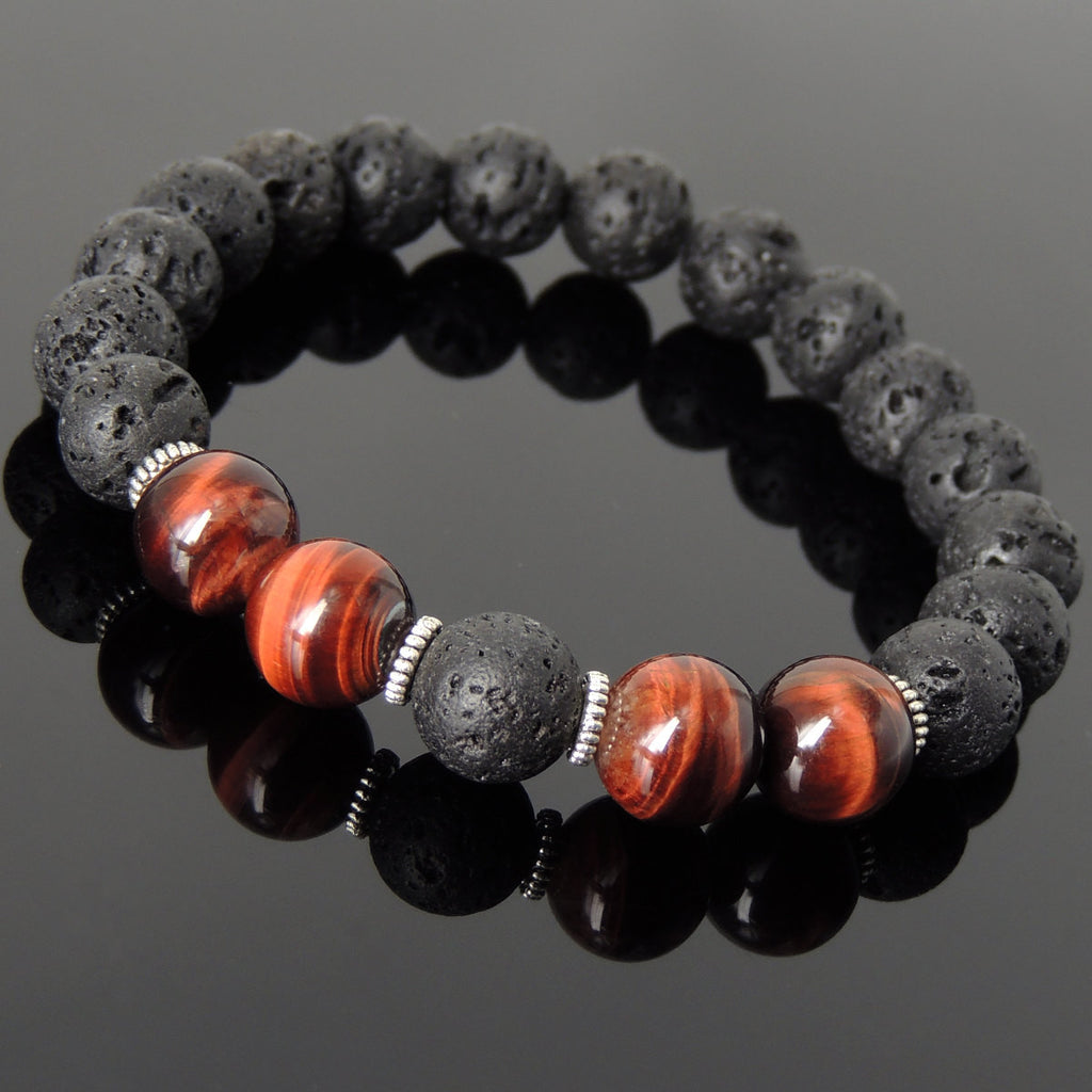 Men's Women Bracelet Lava Rock Red Tiger Eye Tibetan Silver Yoga Mala DiyNotion Handmade T278