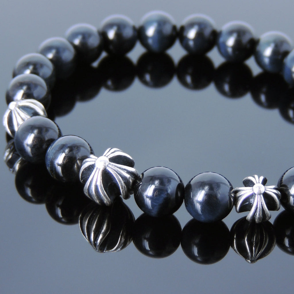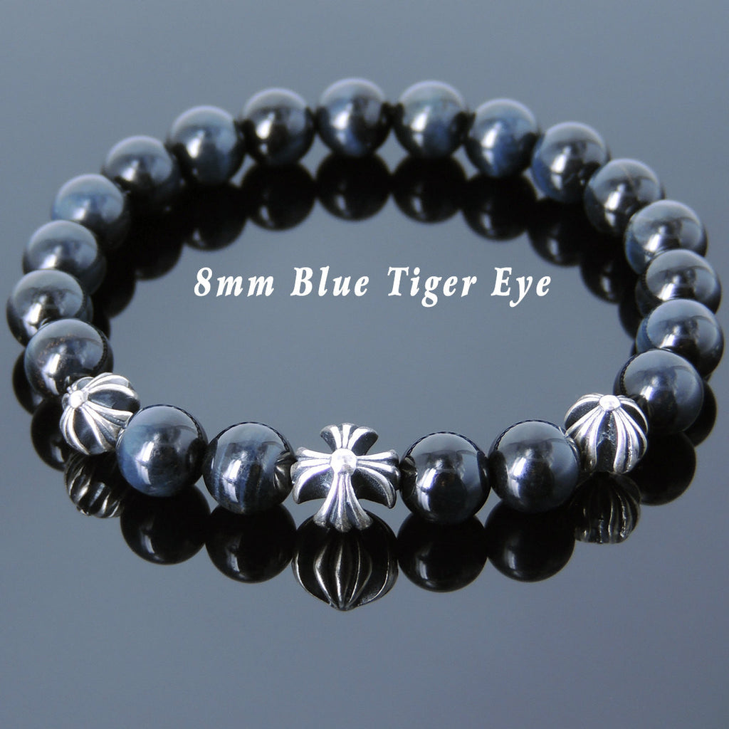 Materials: Gemstone,High Quality Blue Tiger Eye,925 Sterling Silver,Elastic Cords
